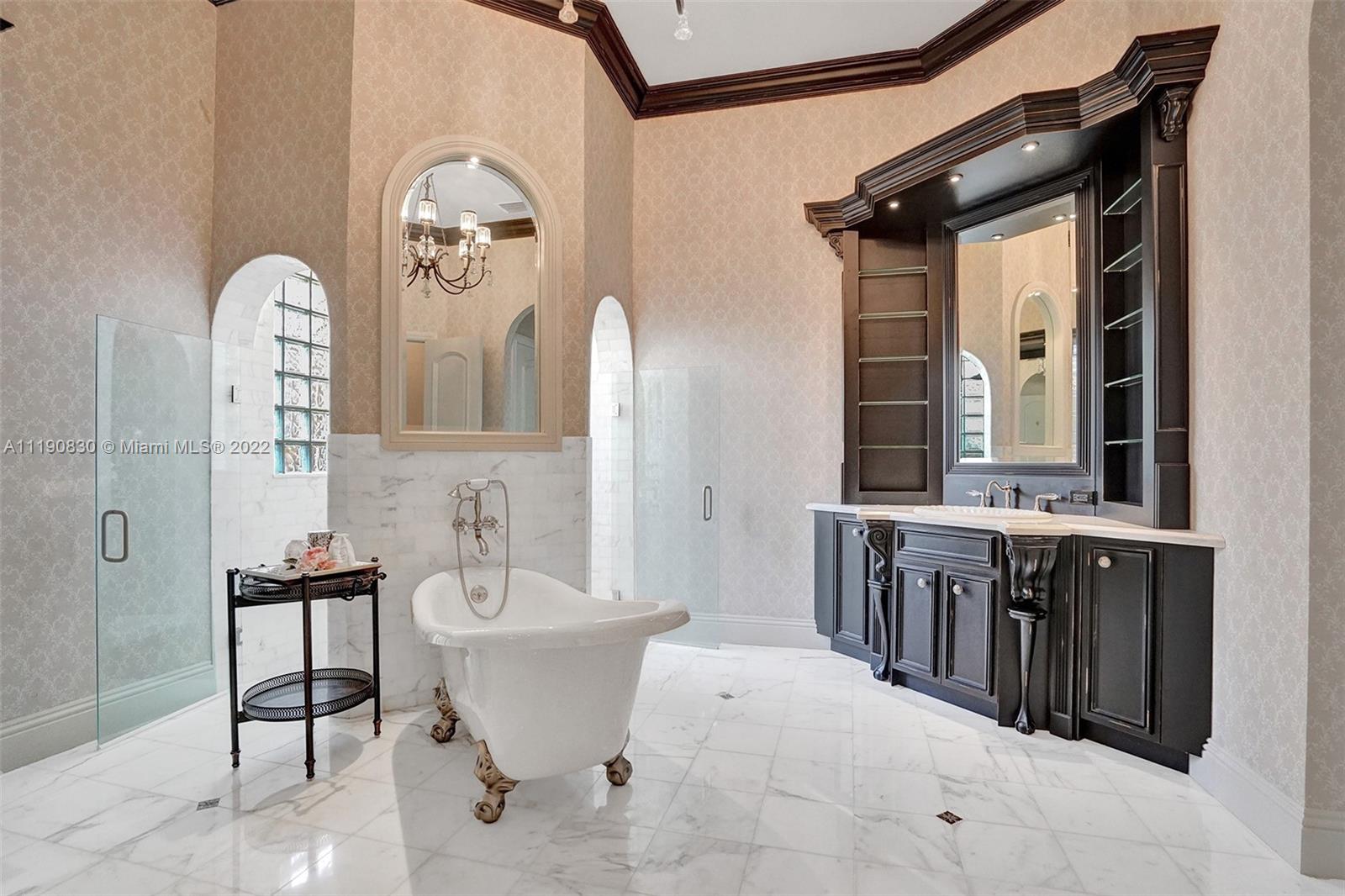 Perfectly placed on royal palm tree-lined cul de sac street in the gated community of Riviera at Weston Hills CC. 4800 sq ft under air, 5 bedrooms, 5.5 renovated baths plus an office. BRAND NEW IMPACT WINDOWS*NEWER ROOF*Real wood floors throughout living areas*volume ceilings*extensive crown moldings*exquisite custom light fixtures throughout*Plantation shutters. Gorgeous unobstructed water views. Renovated kitchen*custom wood cabinetry, center island, granite countertops, Stainless steel appliances, Double Subzero Refrigerator, double oven w/ warming drawer, wine cooler, top-of-the-line appliances, breakfast area. Master suite w/sitting area, his/hers closets, breathtaking, luxurious marble bath w/ vessel tub. Grand covered patio overlooking pool, lake w/lush landscaping. Fully fenced
