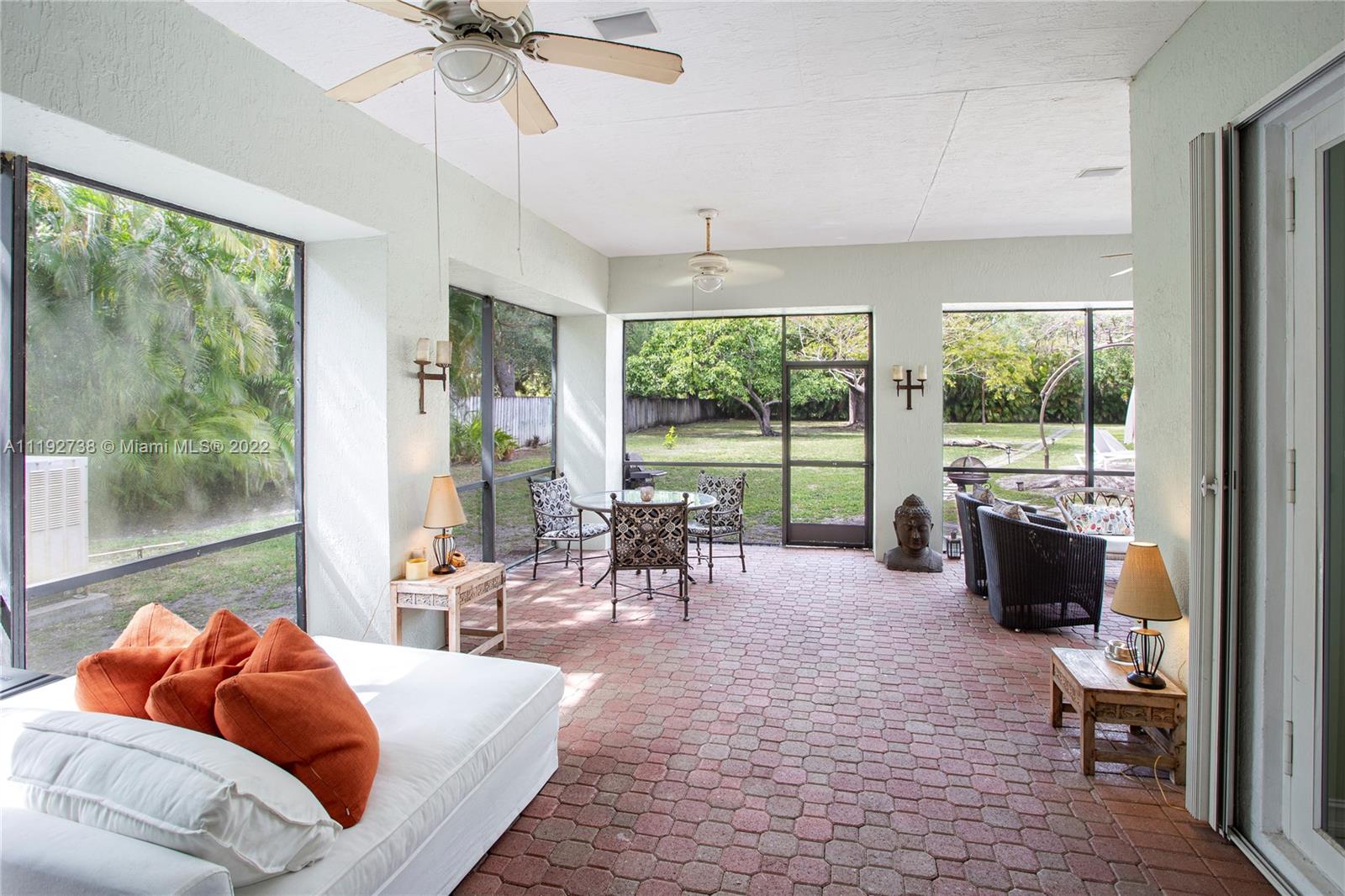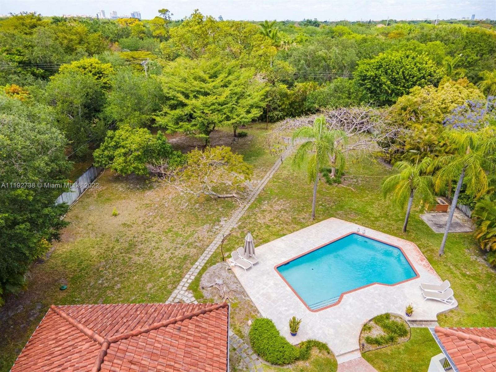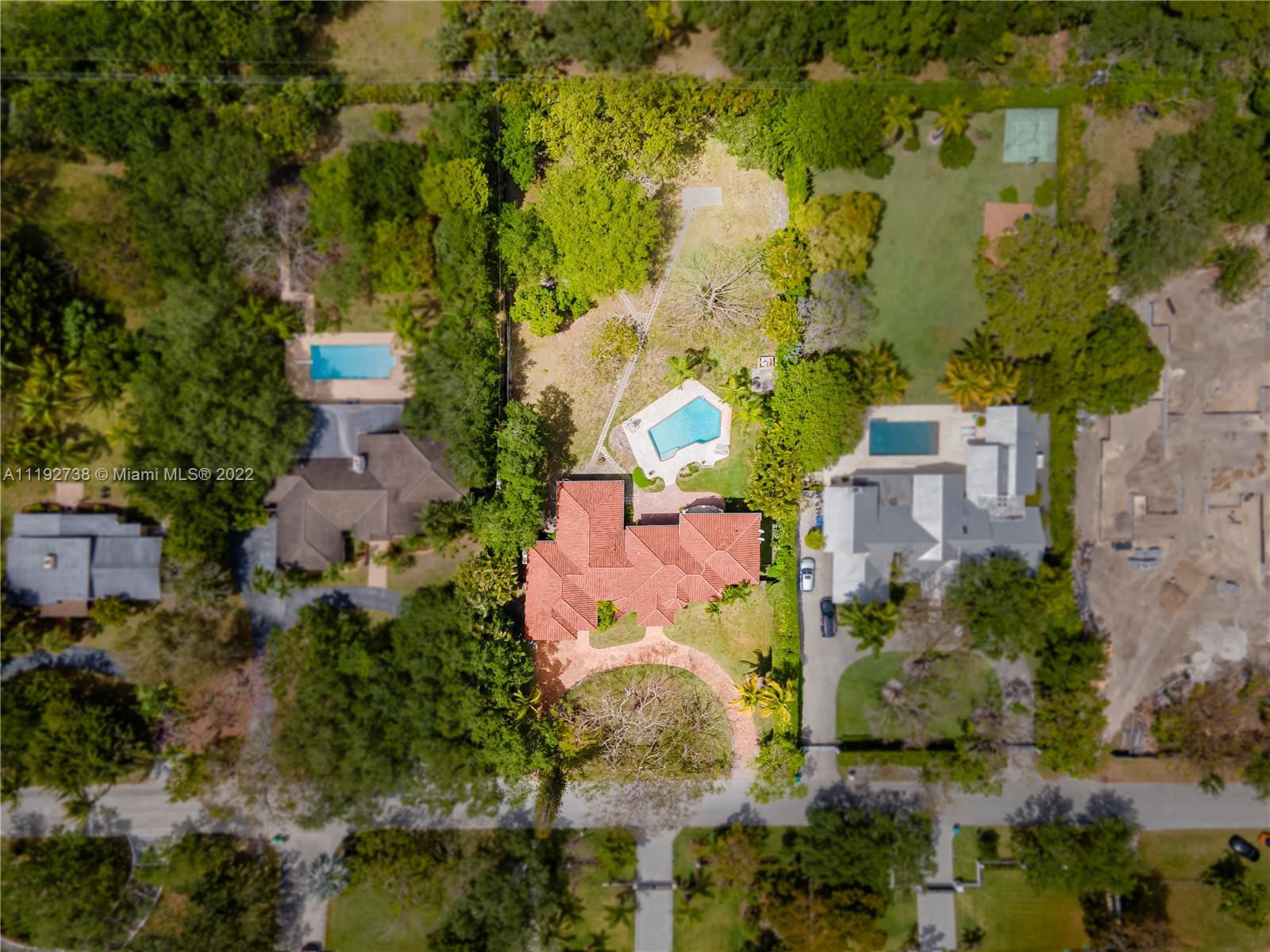 Elegant Two Story Estate on almost an acre in the heart of Pinecrest! Upon entering this custom home, you're greeted w/ volume ceilings & picture perfect views of your massive backyard through the large living room windows. Kitchen & large family room lead out to spacious screened in porch overlooking backyard & pool. Downstairs ftrs 3 en-suite bedrms - 2 bdrms on the east wing of the home w/ a shared den between bdrms & 1 bdrm on the west wing. Private master suite on second level w/ sitting area, relaxing balcony overlooking backyard, large bath, 2 walk-in closets, & office which could be another bedroom. Backyard oasis w/ screened porch, pool deck, & huge yard for endless possibilities. Pinecrest Elem., Home generator, 2.5 car gar., laundry & safe rm. "It's not Miami, It's Pinecrest!"