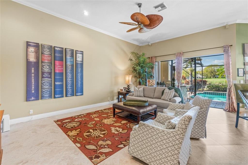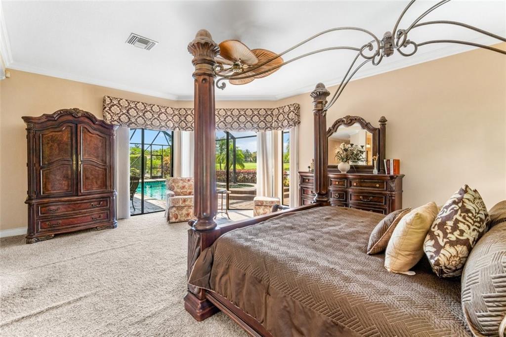 Simply a beautiful home sited on a breathtaking Waterfront/Golf Course Lot! Gorgeous Wide & Long Views of the waterways and the golf course beyond take center stage throughout the home via walls of windows & glass doors. The large & open family room/kitchen area is perfect for enjoying Florida's indoor/outdoor living/entertaining. The luxurious primary suite is impressive with a sitting area, and a spa bathroom with his/her vanities, marble floors, and a separate tub & shower. The backyard is glorious with a pool, large screened porch, summer kitchen, expansive backyard, and peaceful views of the water and golf course. The golf course was recently renovated and updated. Luxurious resort-style living awaits you with this fabulous Eagle Trace home. Some lighting maybe exclued