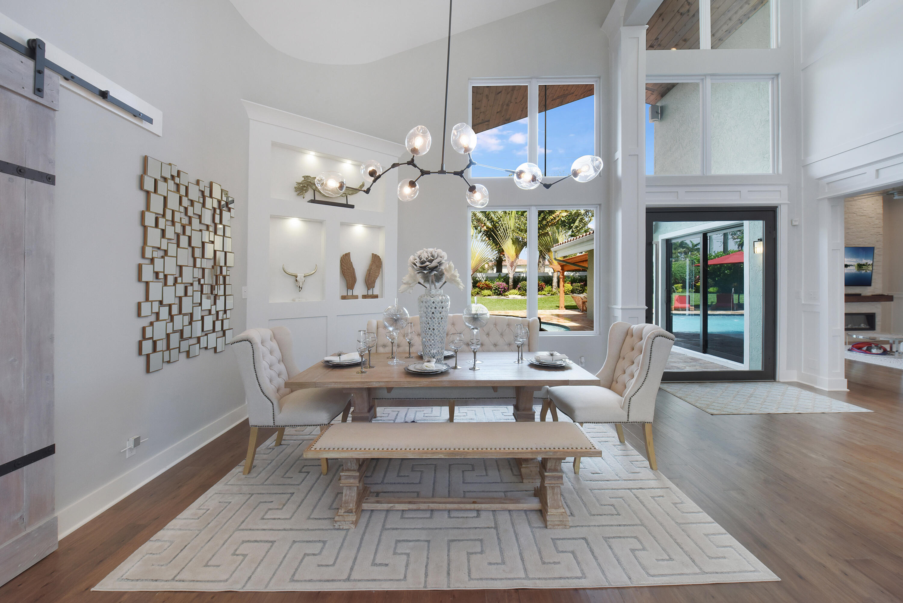 COMPLETELY RENOVATED NO EXPENSE SPARED! ENTERTAINERS AND FAMILY DREAM HOME located in the highly sought-after Colonnade community. Beautiful, engineered hardwoods throughout. Huge great room with 18ft ceilings. Brand-new kitchen cabinets, appliances, Cambria Quartz on the huge 10ft island. Huge master suite looks out to the backyard, luxurious, Carrara Marble Master Bathroom with freestanding tub and spa shower. Home has all new windows, new Impact doors and sliders. Impact garage door. Recessed LED lights throughout. Video camera security system. Pergola has restaurant style misting kit around the exterior Also has a 16ft motorized screen on the west side of the pergola to keep out the afternoon sun. There's a park inside the community that offers tennis, basketball & playground.