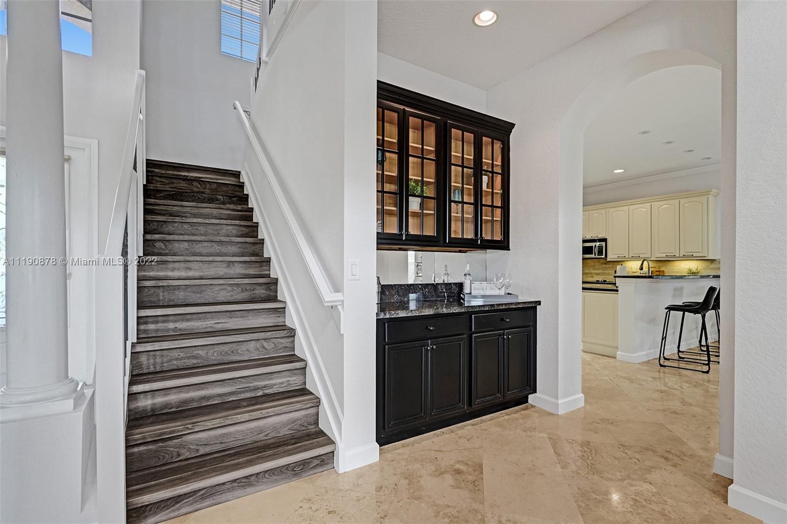 Talk about long lake views. Recently renovated luxury estate home located in The Isles at Weston. Popular Montego model features 6BR/5.5BA/4CG, office, large loft on the 2nd level. Marble flooring throughout 1st level living areas. Entire home is freshly painted. Spacious gourmet kitchen w/42" white wood cabinets, granite countertops, center island, SS appliances, double wall oven, built in wine rack, expansive walk-in pantry. Grand 2-story living room w/multiple french doors to private covered patio & resort-style yard. Expansive paver patio w/heated freeform pool fully fenced w/baby fence. Grand owners suite on the first level w/a modern bathroom roman tub, dual sinks, expansive custom walk-in closet. New luxury plank flooring on the 2nd level stairs & landing. Full accordion protection.