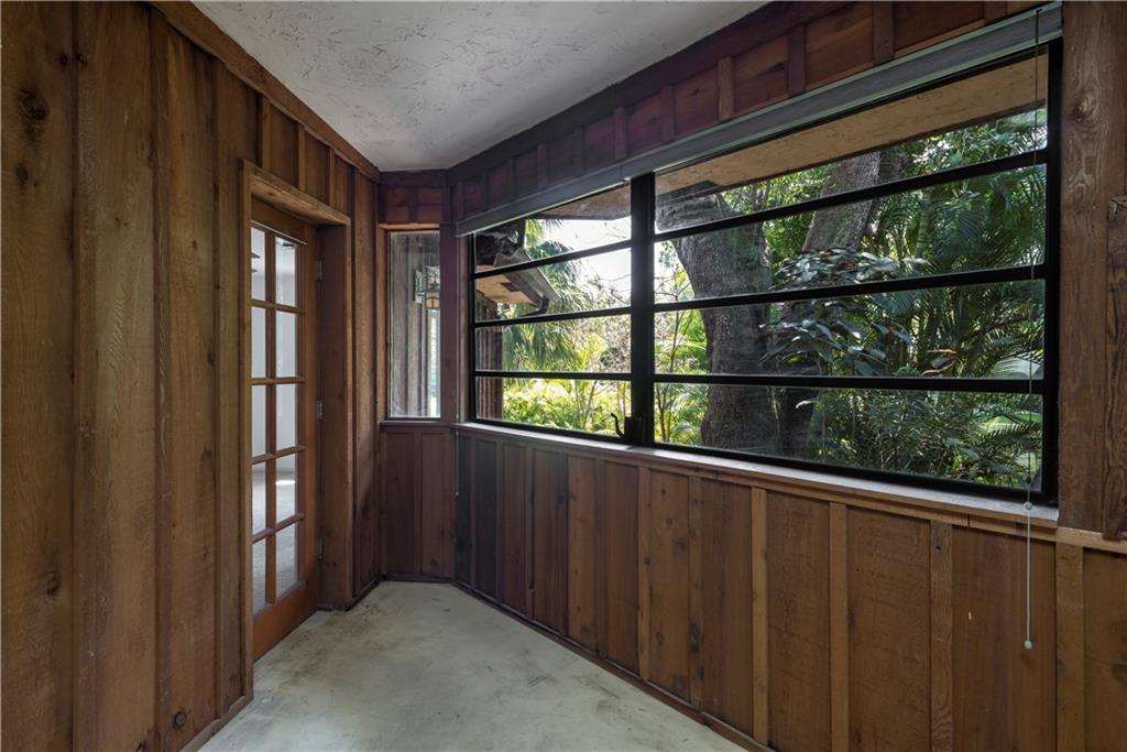 Unique Florida property in Fort Lauderdale. Has a feeling of privacy being tucked away from the street on almost a 1/2 acre lot with lush Florida landscape. Private master suite upstairs with walk in closets, balcony, and meditation room. Two bedrooms on main floor with an additional room that can be a work space or art studio. Large enclosed porch to entertain. A second porch off the kitchen for a morning cup of coffee. Two decks in the back yard. Garage. Shed. This space has it all. Amazing opportunity. Close to highways, airport, downtown, and beaches.