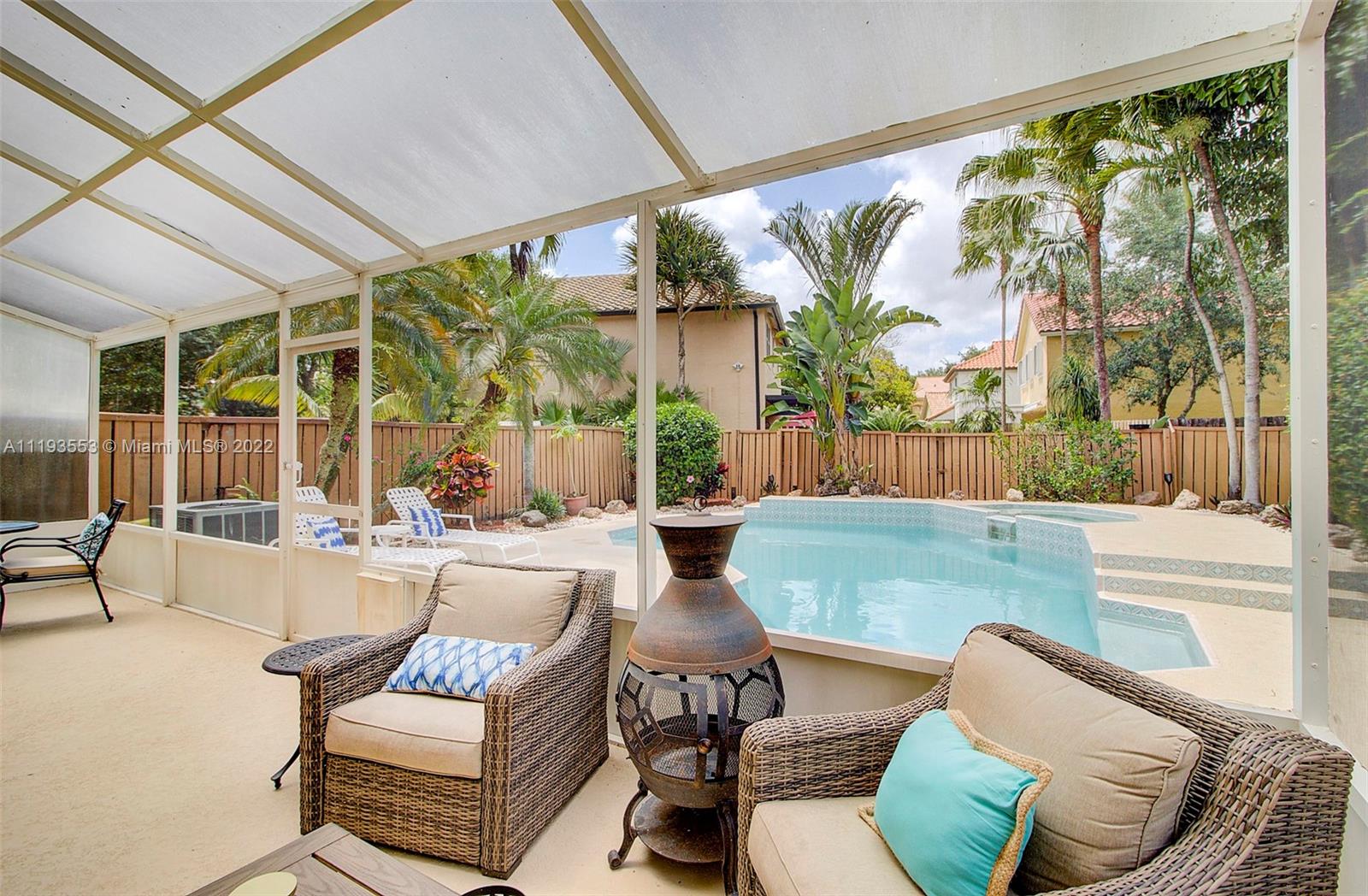 Welcome home! This beautiful 2 story pool home features 3 bedrooms, 2 1/2 baths and 1 car garage located in the highly sought after community Ventana in Plantation. Freshly painted interior and exterior. As you enter the home you are greeted with high ceilings giving the home the best natural lighting. Lovely kitchen with white cabinets and granite counter tops. Tile floors throughout first floor. Enjoy Florida weather from your screened porch and custom designed pool that was recently resurfaced. Accordion shutter throughout that makes it convenient for hurricane preparedness. Bonus guest parking located in front of home. Centrally located. Just minutes to 595, I75, Fl Turnpike, shopping, restaurants and more. Excellent School district with Central Park down the street!