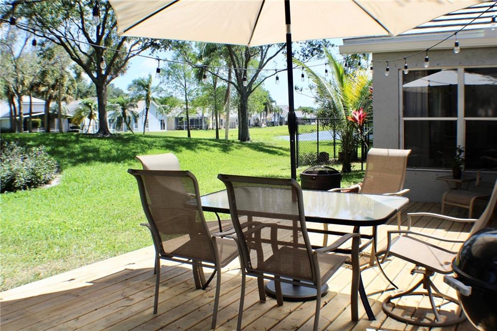 WARM & BRIGHT - Rare Find! - Beautifully kept 3 bedroom, 2.5 bathroom home in desirable Forest Ridge. Fully remodeled kitchen, new wood-look vinyl floors 2021, new upstairs carpet 2021, NEW ROOF 2021, new outdoor deck 2022. Home sits on beautiful backyard green space, hurricane shutters, A-rated school district. Forest Ridge has nature trails, community pools, basketball, tennis courts, and more.