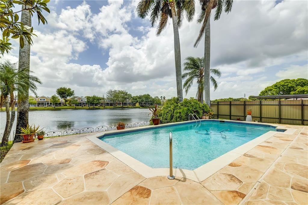 Amazing lake front home with pool in sought after Pembroke Lakes. 3 bedroom/ 2 bathrooms. Double sliding doors in the back allow for beautiful sunset views. Large walk in closet in Primary bedroom. Wood burning fire place. Automatic transfer switch ready for generator hookup. Exterior and interior freshly painted. Rolladen shutters. Impact entry front door 2021. Garage was turned into a large family room but can easily be turned back into a large 2 car garage. NO HOA!