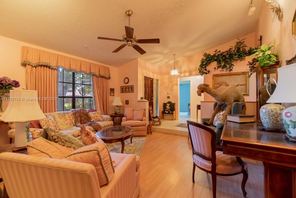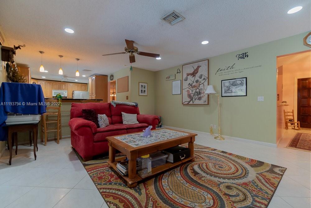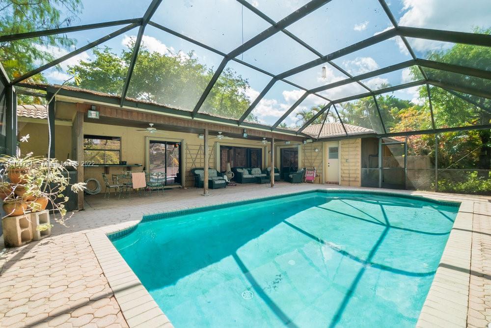 Enjoy your own little touch of Eden inside Coral Springs! Private, secluded, lush backyard in this desired, tree-lined neighborhood in Oakwood. Single-family home is a one story, 4 bedroom, 2 bathroom, 2 car garage with pull down attic. Closets throughout house are designed for maximum clothing and storage. Dining and living room are open and spacious. Kitchen has open concept with granite counters, white appliances, wood cabinets, pantry and elevated island for seating/entertaining. Sliding doors in the family room lead to screened patio and heated pool. Patio is perfect to enjoy nature all year round. Hurricane accordion shutters. Property backups to Oakwood Park, which is maintained and owned by the city. Very peaceful, and very loved home. Good schools, shopping & dining. No HOA.