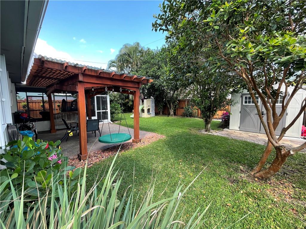 Florida living at it's best! Cozy and bright 3/1 with 1230 sq. ft, large upgraded kitchen, SS kitchen appliances, granite countertops, wood-look porcelain tile throughout, crown moulding, off-street parking for 2, fully fenced in back yard lined with jasmine and palm trees with gated entry x2, screened-in porch, additional patio/pergola, 11x9 gable shed, updated irrigation system with smart/Wi-Fi sprinkler control (2021), 360 hurricane shutter protection, tankless water heater (2022), keyless entry, Central Air (2015 Full Upgrade), 7,500 watt portable generator. Well-maintained wrap-around yard. 2 blocks from Anderson Park and a brand new playground! A must-see!