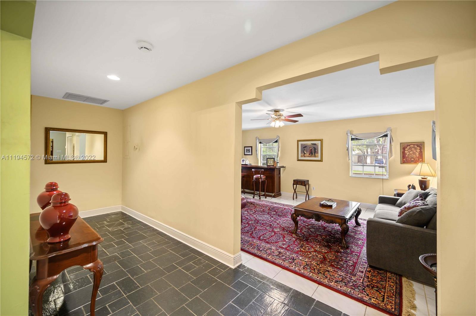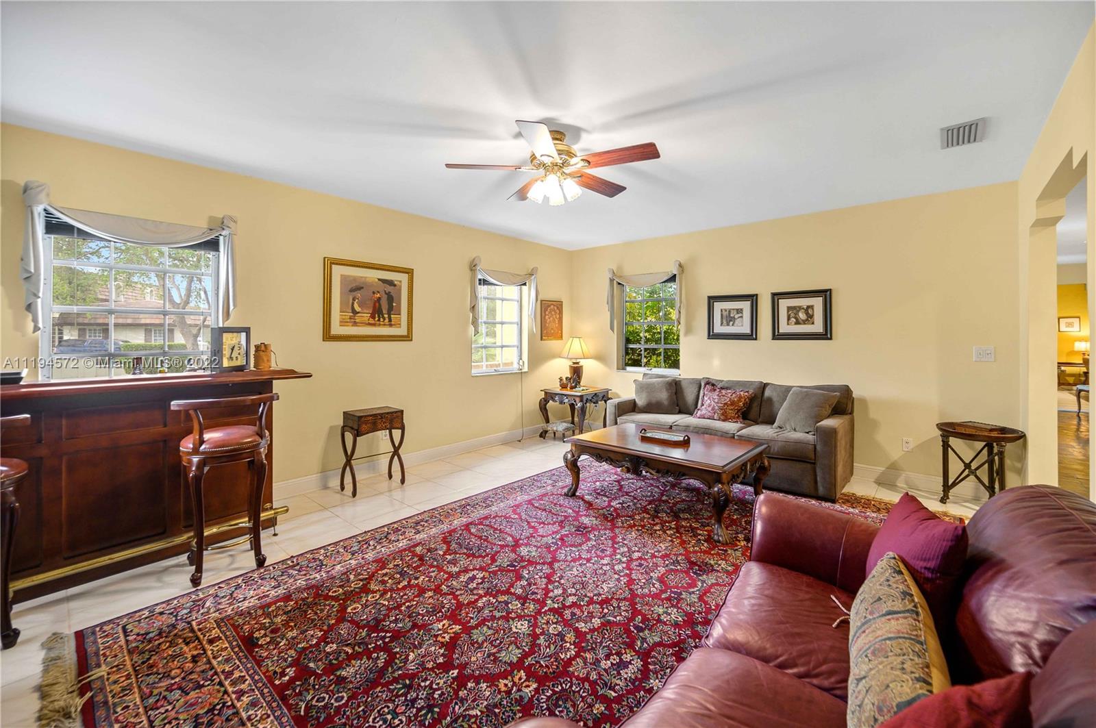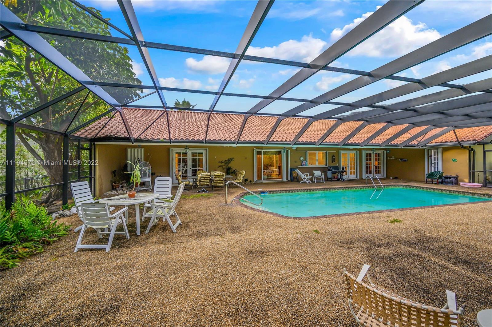Amazing opportunity in the highly sought after gated community of Hammock Oaks! This waterfront property boasts the perfect canvas and magnificent back drop to create your own masterpiece. Ideal design and floor plan, this home offers thoughtful living space, spacious bedrooms and kitchen with breakfast area overlooking the pool/patio area. Charming characteristics also include a wood burning fireplace, welcoming family room, formal dining room, slate tile foyer entrance and french doors leading out to a tropical paradise. Enjoy a private sunset shimmering off the water from the patio area like a true Floridian. Other features include 2 car garage, circular driveway and screened in pool area. Excellent location in South Coral Gables nearby shops, great hospitals and top notch schools.