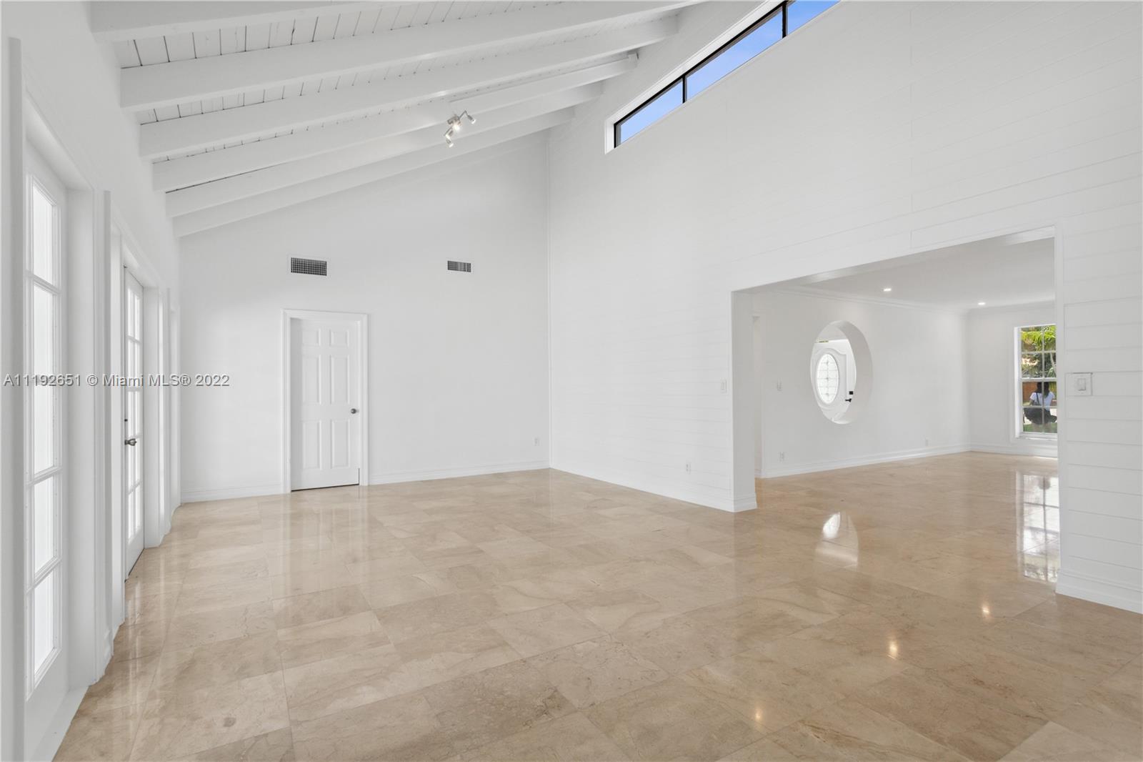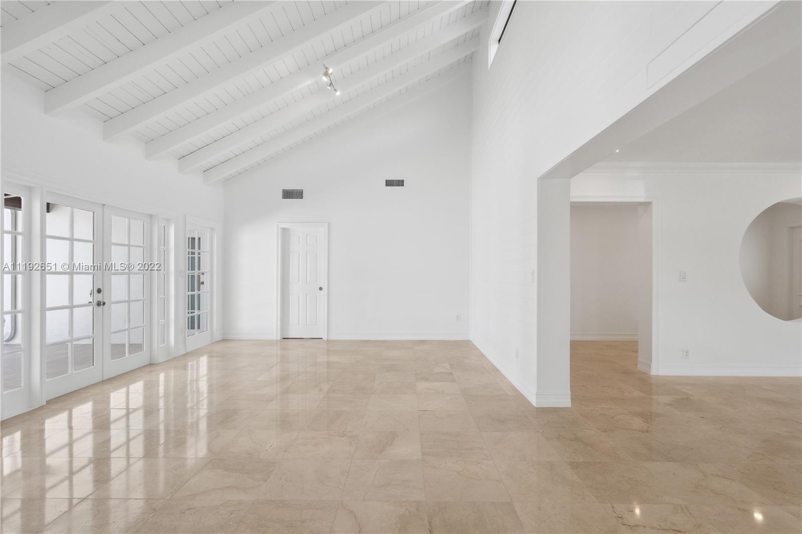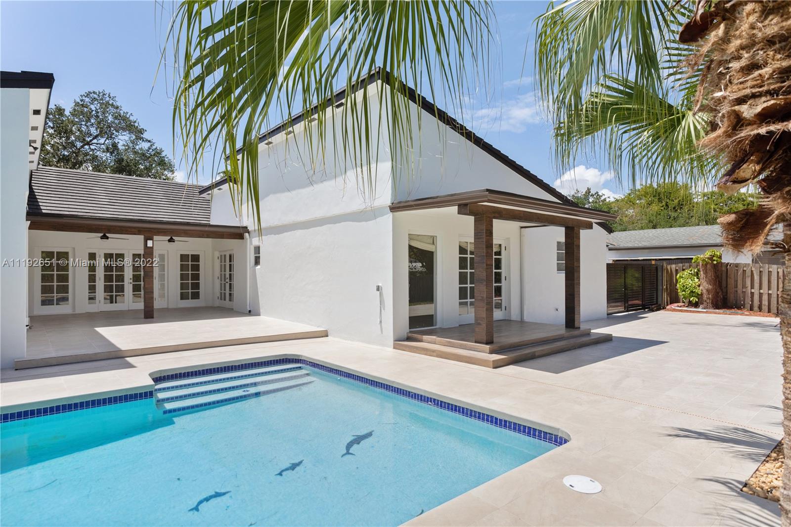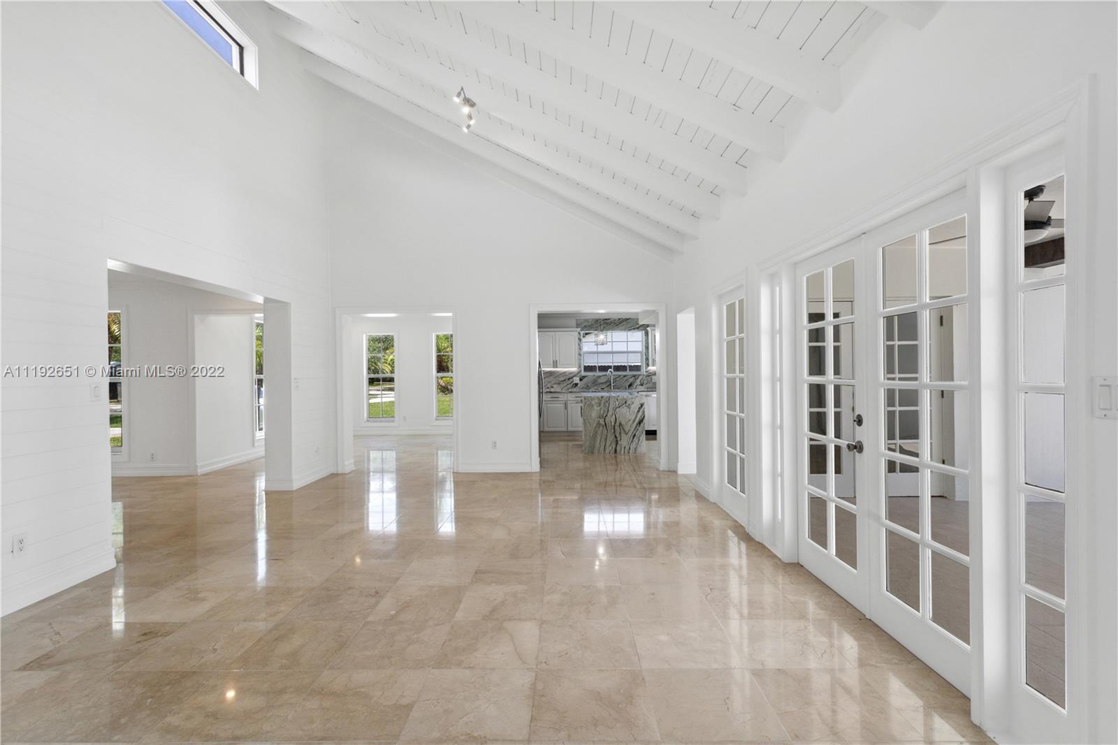 Florida dreaming in this fabulous updated home in the sought-after Kings Bay gated community in Coral Gables. The newly updated spacious and airy split-floor plan in this 4,000 sf space feels bright and welcoming. 5 bedrooms, (2 primary suites), plus an office and 3 full bathrooms, marble flooring throughout, an eat-in kitchen with new stainless steel appliances, and a laundry room. Light-filled interiors feature soaring vaulted ceilings, and beautiful French doors beckon you to the pool area and spacious backyard, a comfortable spot to relax with a morning cup of coffee or watch the sunset. The shaded covered patio is perfect for enjoying the outdoors and entertaining. A wonderful place to call home. This community has riparian rights to the Deering Bay Marina boat ramp.