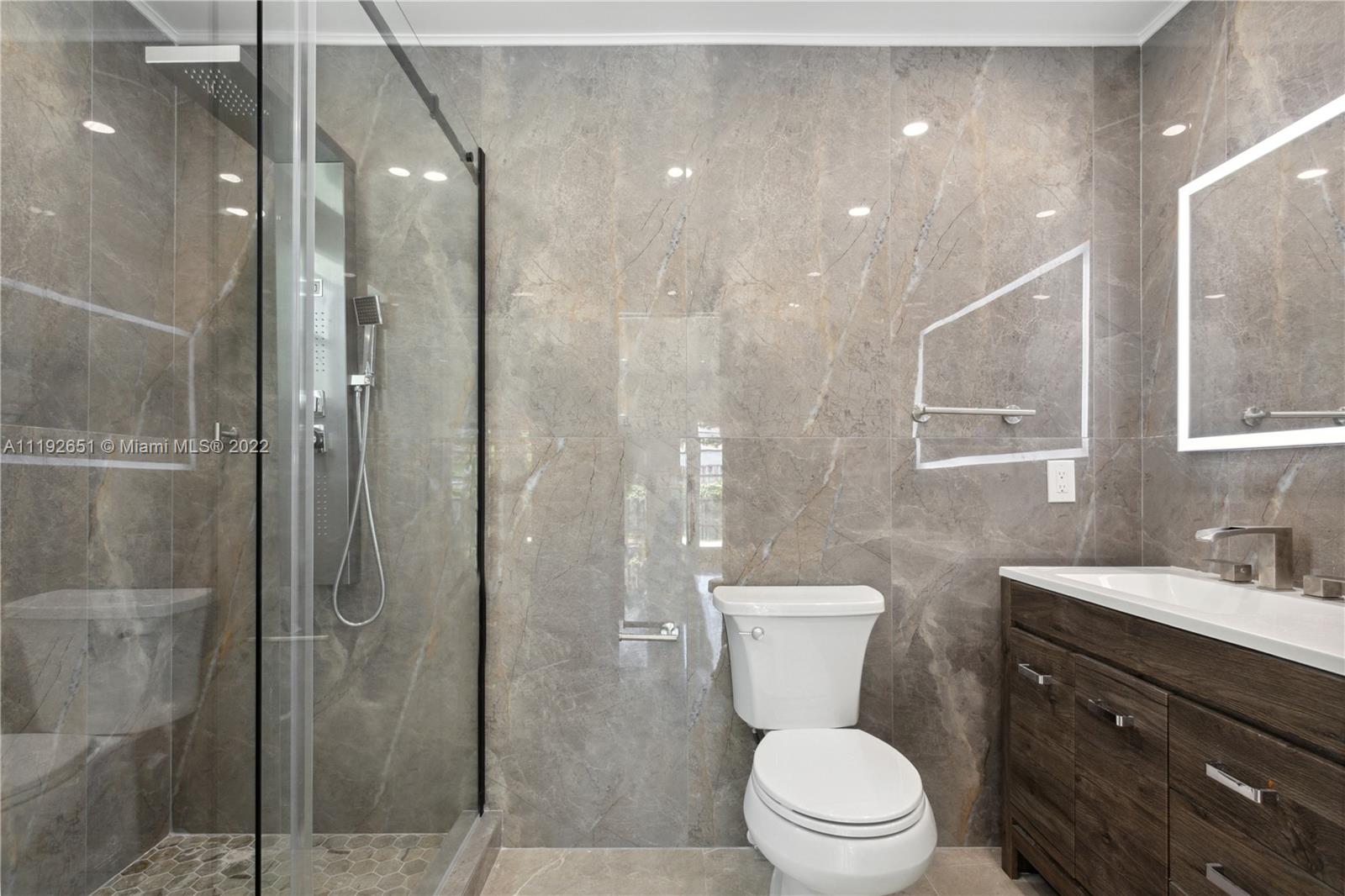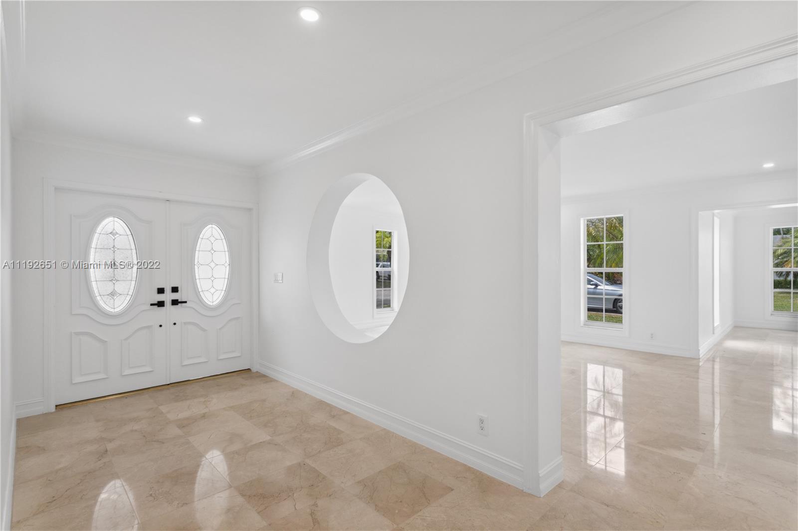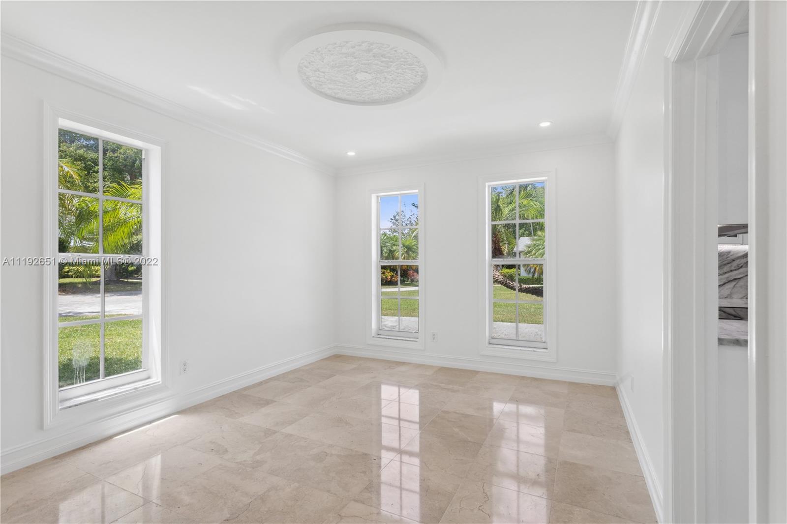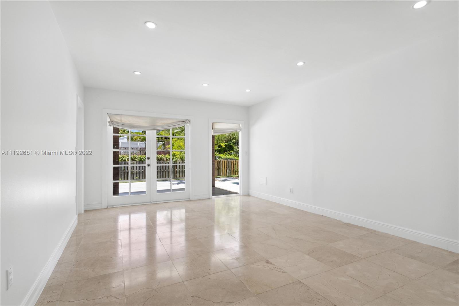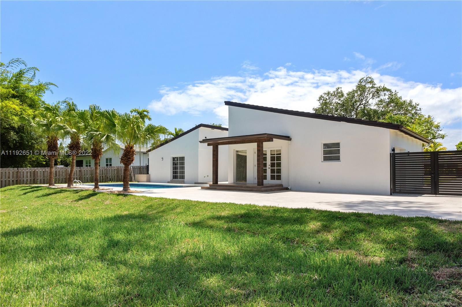 Florida dreaming in this fabulous updated home in the sought-after Kings Bay gated community in Coral Gables. The newly updated spacious and airy split-floor plan in this 4,000 sf space feels bright and welcoming. 5 bedrooms, (2 primary suites), plus an office and 3 full bathrooms, marble flooring throughout, an eat-in kitchen with new stainless steel appliances, and a laundry room. Light-filled interiors feature soaring vaulted ceilings, and beautiful French doors beckon you to the pool area and spacious backyard, a comfortable spot to relax with a morning cup of coffee or watch the sunset. The shaded covered patio is perfect for enjoying the outdoors and entertaining. A wonderful place to call home. This community has riparian rights to the Deering Bay Marina boat ramp.