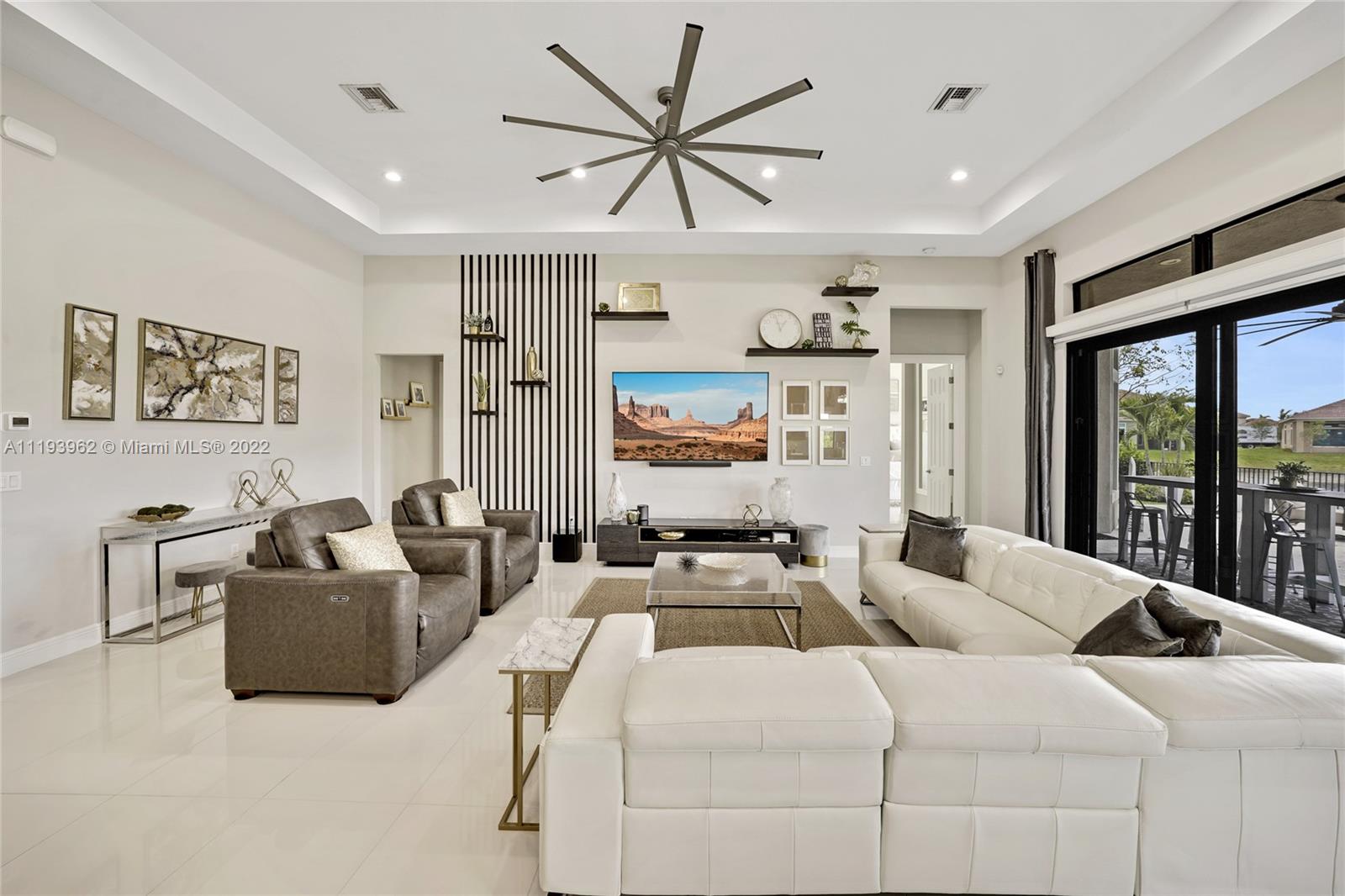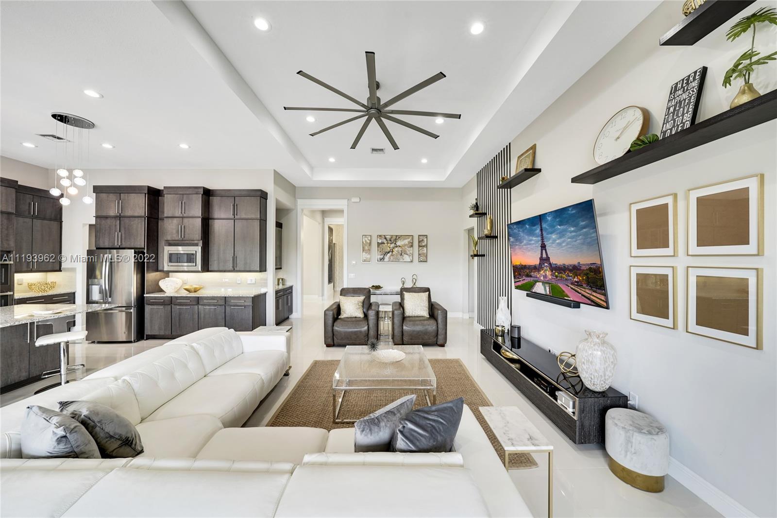 NEW BUILD Resale, No Waiting! Motivated Seller. Stunning Single-Story Waterfront Lot. Open & Spacious w/tons of Natural Light. 12' ceilings. 3/2.5 Baths, plus Office or possible 4th Bedroom.. $200, 000+ in upgrades. Gourmet Kitchen 12' Island, Bar Area w/Wine Cooler, Walk-In Pantry, High End Appliances. Tile floors and Designer Lighting Throughout. 2 Custom Closets in Master. Master Bath Multiple Shower Heads, Dual Vanities &Tub. Extended Patio. Large Laundry Room w/Refrigerator. Impact Windows & Doors & Garage. Fenced w/house walk-around walkway. Lush Landscaping Lighting and Accent Soffit Lighting. 2 Car Garage with Extra Storage and Epoxy Floor. Full House Generator. Guard Gated Community w/Resort style Amenities with Low HOA.