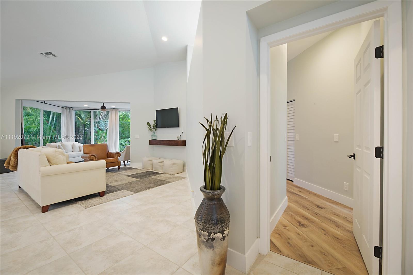 Truly remarkable property located in the highly sought after gated community Boca Country club that has NO mandatory country club memberships for residents. This tastefully upgraded home is situated on one of the largest lots in Antigua Point. Featuring 3/2.5 and attached 2 car garage. Once you enter through the front doors you are blown away by the expansive floor plan, vaulted ceilings and sun room that is surrounded by your lushly landscaped private backyard w/ deck. Split floor plan. Neutral tile & new wide plank laminate flooring in bedrooms. All bathrooms are beautifully upgraded. Owner's suite features dual walk-in closet w/ built-ins & en-suite bath w/ soaking tub, dual sinks & glass enclosed shower. New roof 2020. Accordion Shutters. Upgraded fixtures. New appliances 2020 & more!