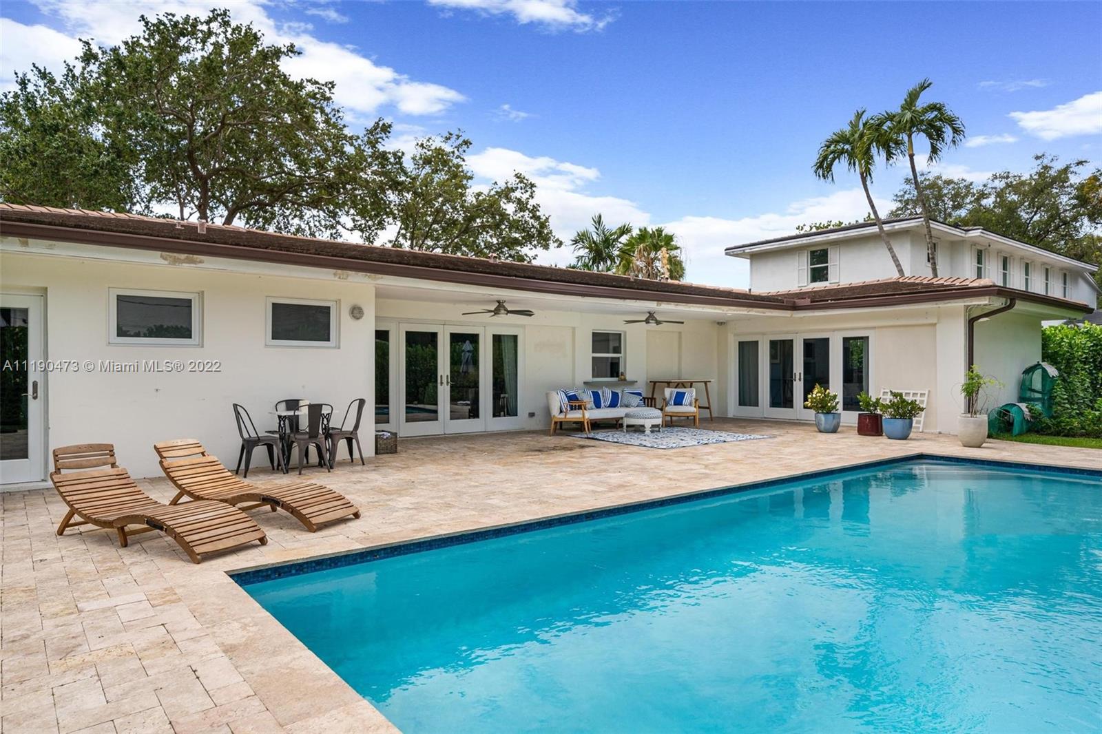 Updated South Gables home in the neighborhood known as Sunrise Point on a 10,700 lot. This 4 Bedroom 3 Bathroom home has tons of natural light with impact windows. Newer roof (2017), plumbing updated with new floors and updated bathrooms. The split layout home w/ 2 master suites has lots of different configurations to make it your own. Separate master suite w/ spa-like bath that features oversized frameless glass rain-shower. Open kitchen with custom kitchen features wood cabinetry, stainless appliances overlooking the pool with tons of access points to the outside. 2 car garage with split unit keeps the area cool for storage or car use. Located a short walk or bike ride to galleries, boutiques, cafes & bayfront parks & marinas. Sunrise Harbor Park is down the block for children