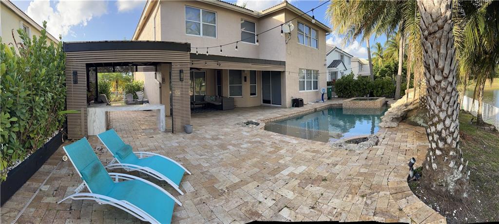 This beautiful sought-after two-story home is in a gated community with 24 hour security located in west Miramar! This home has great nearby plazas and schools, with quick and easy access to the highway! The perfect home for entertaining with recently renovated covered patio and outdoor kitchen with an amazing pool/spa with lake view. Modern kitchen, marble floors, wood on the second floor, spacious master suite with 2 walk-in closets, and 4 additional bedrooms. And best of all Friendly Neighbors is always a plus!