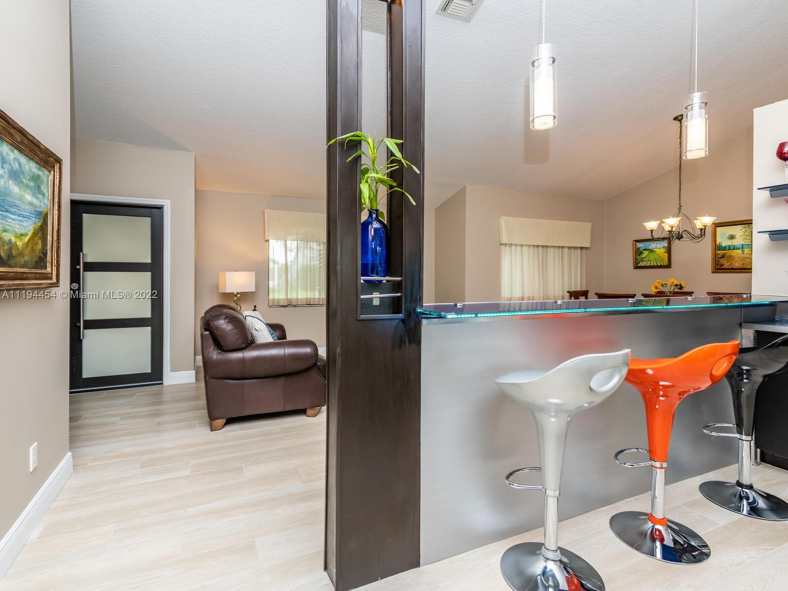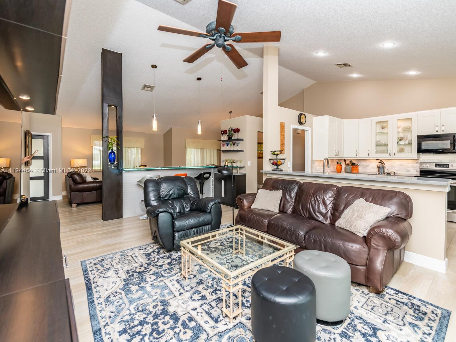 Remodeled dream family home in lovely Forest Ridge within walking distance of Silver Ridge Elementary, Tree Tops Park and community pool, tennis/pickleball and basketball courts amid some majestic live oaks. Home features all new hurricane impact windows and doors, vaulted ceilings, enhanced storage and lighting throughout open kitchen and room areas. New ceramic plank flooring throughout entire house and travertine in spa themed and designed bathrooms with additional storage and lighting. New wifi thermostat, water heater, sprinkler system. Large backyard and garden easily accommodates a pool. New interior and exterior house colors in calming tranquil neutrals throughout. Updated white kitchen with tall cabinetry and undermount lighting make the gray quartz countertops glisten.