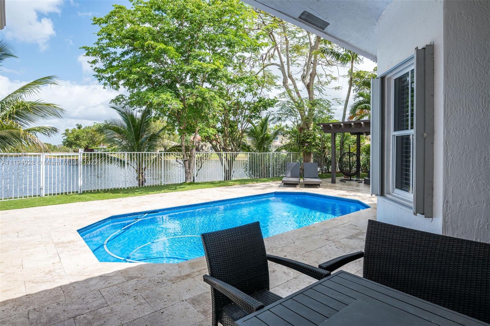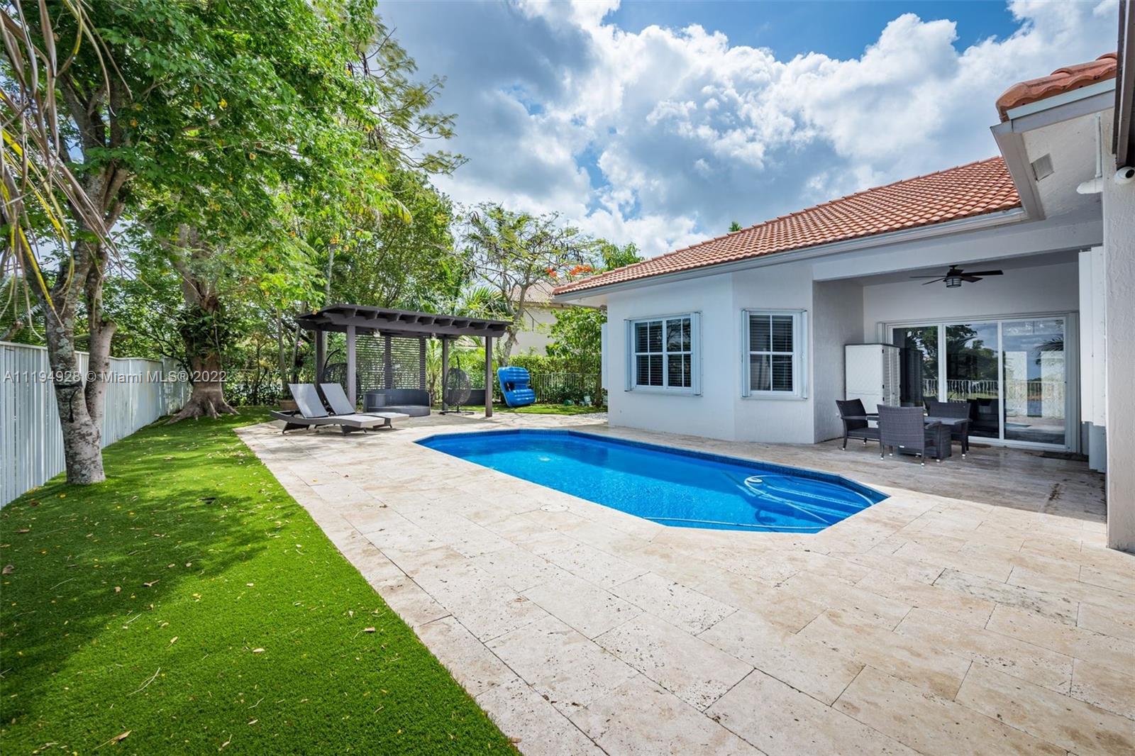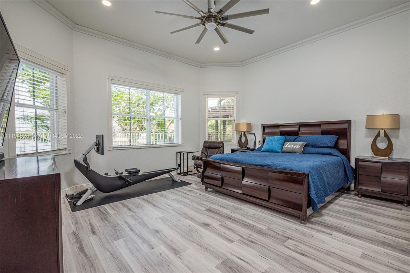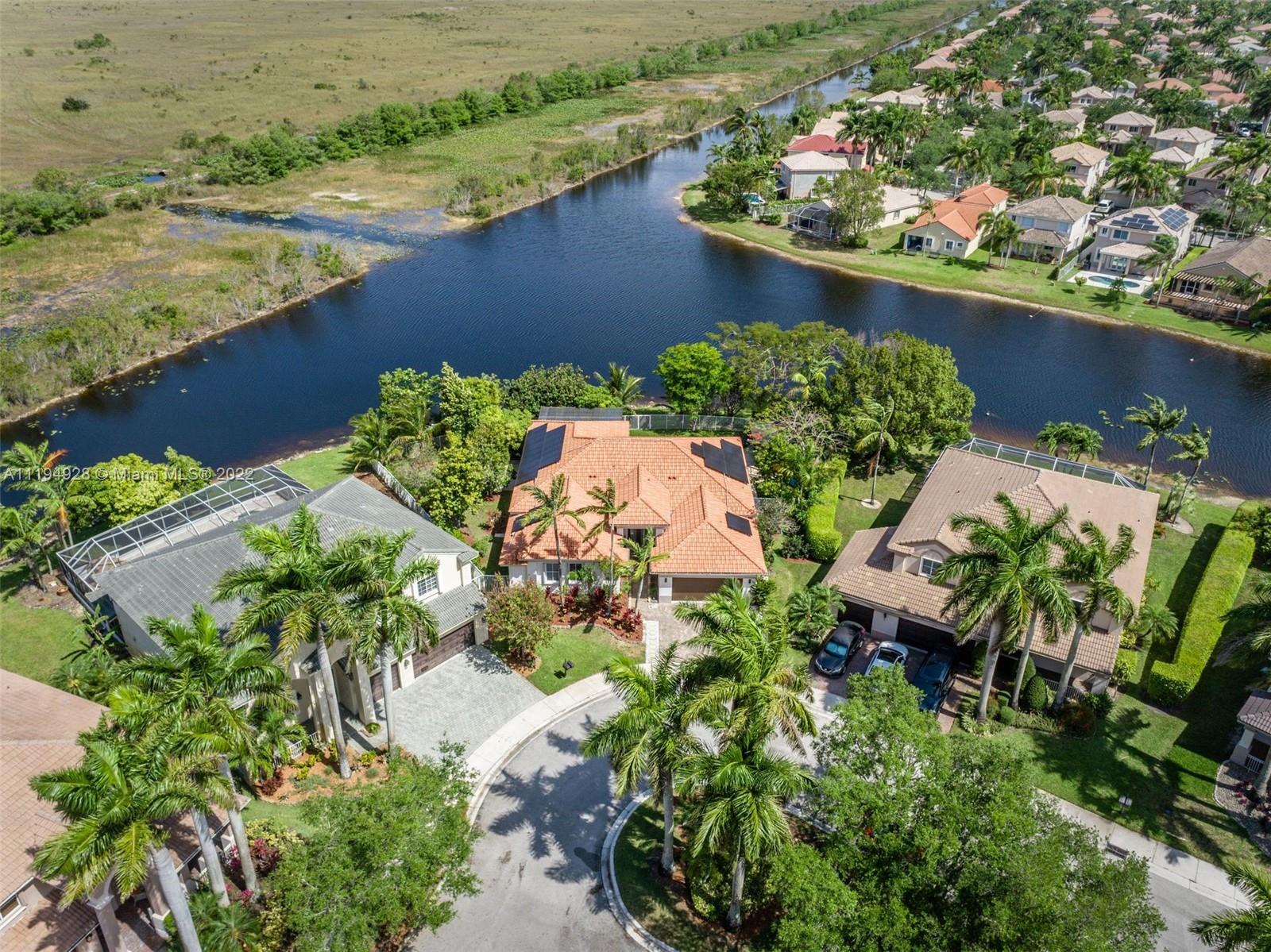 Panoramic Wide Water Views from Oversized (14,089) Cul-de-Sac Lot located in Savanna. New Roof (2019). The floor, kitchen and bathrooms was upgraded in 2020. Accordion Shutters. TROPICAL PLANTS. High Ceilings. New washer and dryer. New A/C (2022). Solar panel installed in 2021 producing 11.6kw. Amazing outdoor area with BBQ, fridge, table and chairs covered by pergola with ceiling fans, a second pergola is used as solarium for the pool area. Automatic mosquito misting system in backyard installed in 2021.NOT included in sale are: outside audio equipment, outside bar stools, all other outside furniture, and all indoor furniture. YES, it is included in the sale: hub tub, outdoor kitchen, Grill island, bar island, Outside TV, Security cameras, Automated mosquito misting system.