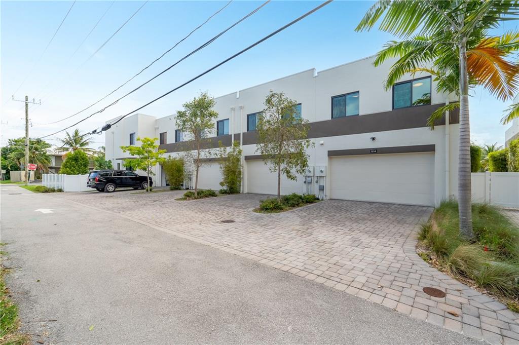 Imagine lying on a sunbed, cocktail in one hand, enjoying gorgeous sunset views from a bedroom roof terrace in this ultra-modern 3 bed/2.5 bath townhouse. Set within the Croissant Park neighborhood, this townhouse, the view (and the cocktail) could be yours. Upgrades inc: Hunter Douglas window coverings, custom closets, appliances, stair railing and new turf on the terrace. The two car garage has new shelving & epoxy floor. Smart home upgrades include: smart locks/lighting/thermostat/cameras. All this and room for a pool! Close to Whole Foods, the airport, the cruise port, I-95, the beach, Las Olas, Broward Center and Wilton Manors. HOA covers pest control, lawn maintenance, roof, insurance, irrigation and property management. See video attached to listing.