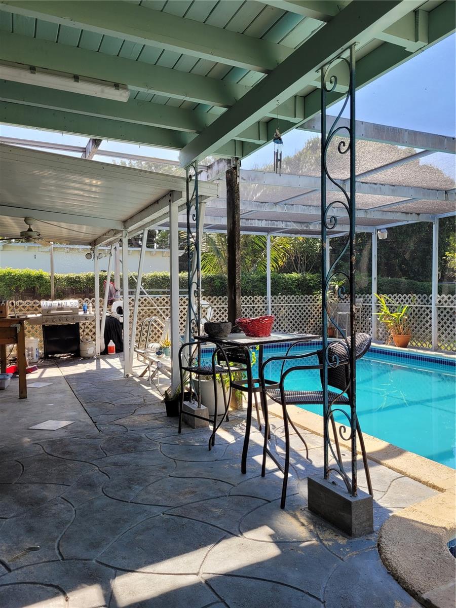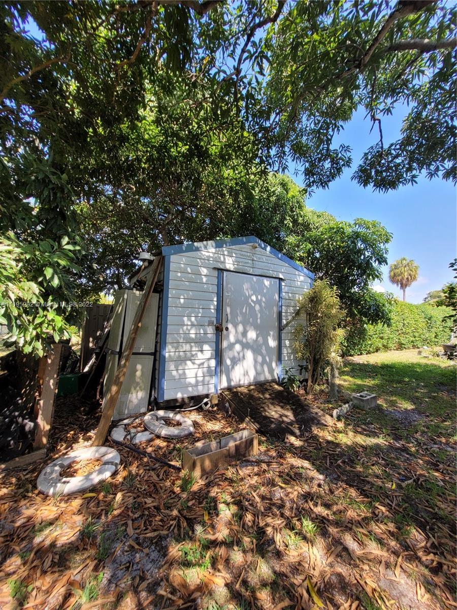 Are you looking for a Single Family Home at Biscayne Village Heights? Come and see your next home at this desired location. It has an oversized lot with fruit trees-Mango & Lychee- and afternoon shadows. Enjoy family and friends in the pool with natural light throughout the day and lighting at night. Resurfaced 5y ago and engine 2months. Service entrance in back to large fenced yard & useful outdoor shed. The patio has a sprinkling system to make it easier and more convenient for you-the water comes from the well water. The house has shutters for all windows and impact doors, security camera systems, and outdoor motion lights for your family's security—a large comfortable outdoor separate laundry room. A/C 2004 and the water heater was changed 6 months ago for a Titan. 5 min away from 95.