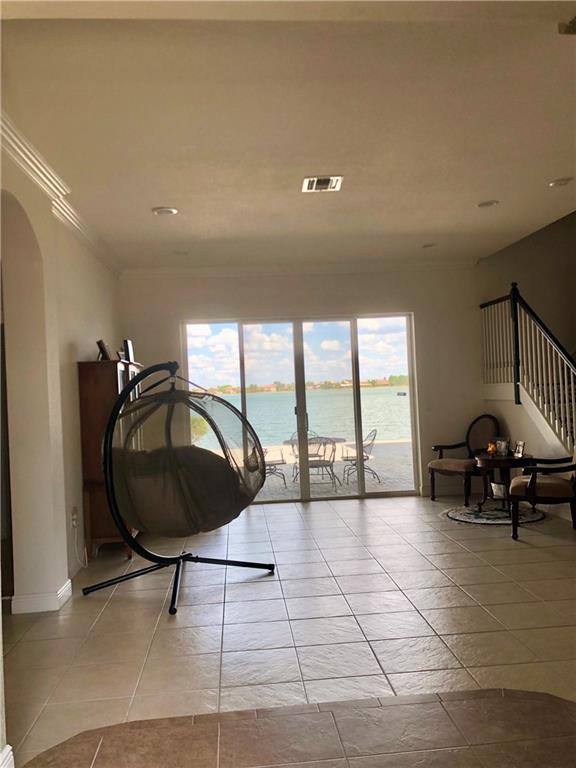 Luxurious and spacious waterfront home located in Sunset Falls. Water surrounds this extraordinary home with the canal across in front and the lake in your backyard. First floor bedroom & full bath. Laundry with newer washer/dryer on 1st floor. Open concept kitchen/family room with eat-in breakfast area overlooking the water. Kitchen features all ss appliances with newer microwave & refrigerator, wood cabinetry with new hardware & granite countertops. Natural light with amazing water views. All bedrooms have ceiling fans, including the loft. Home recently painted. No carpet. Tesla charger. Number of smart home features, including Nest security and thermostats, Lutron smart home lighting System, Bond ceiling fan control system, Ring video doorbell & Baldwin smart key system.