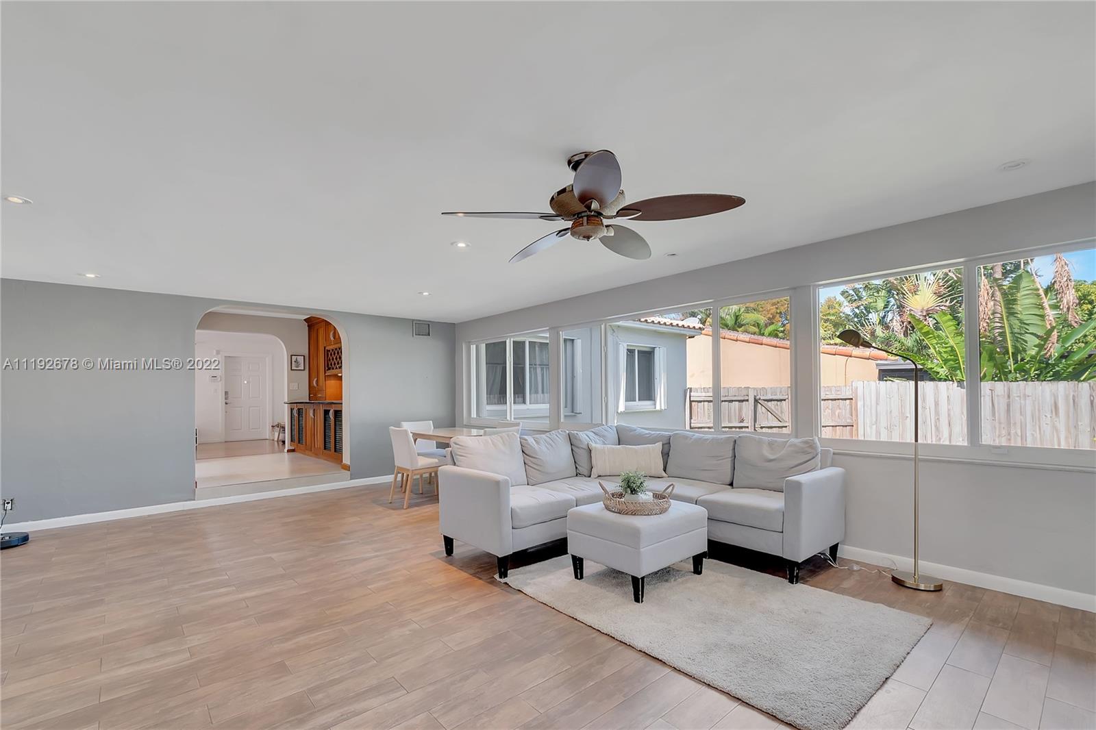 Welcome to this completely renovated 3 bedroom / 2 bath home in Hollywood. This is a home that is perfect for those who love natural lighting, oak wood flooring, gorgeous granite counters and SS appliances, hurricane impact window w/ accordion shutters for extra protection. Brand new deck, no popcorn on the ceilings and high hats. The oversized family room / dining has modern porcelain tiles and the huge screened porch opens up to a large patio that has plenty of room for a pool / RV / boat parking. The best part is that you're a short 6 minute drive from the beach! Pls see link below for the 3-D Virtual Tour.