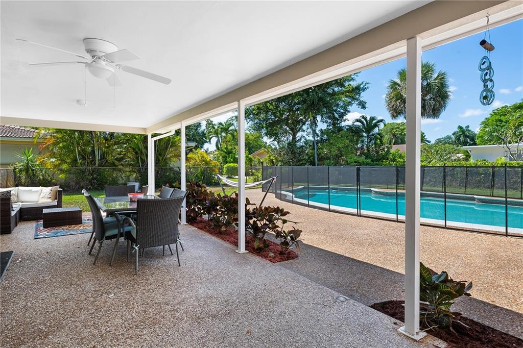Gorgeous, open concept 4 BR/2 BA pool home located on a quiet street in highly desirable Plantation Park. This light, bright substantially updated home boasts tiled floors throughout, modernized kitchen and bathrooms, impact windows and doors, and a freshly painted exterior. Cook amazing meals for your family in the contemporary gourmet kitchen. Split bedroom design. Custom closet systems. AC air ducts replaced and attic insulation installed. Laundry room with 2019 washer/dryer. Spend time outside entertaining your friends in the large covered patio that overlooks the beautiful pool with a childproof fence. Oversize lot. Fenced yard. 2 car garage with portable generator transfer switch. Walking distance to Heritage Park. Close to shopping, parks, schools and restaurants.