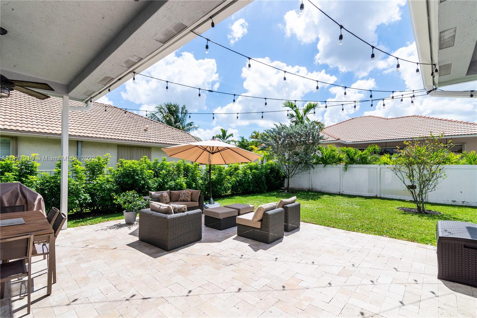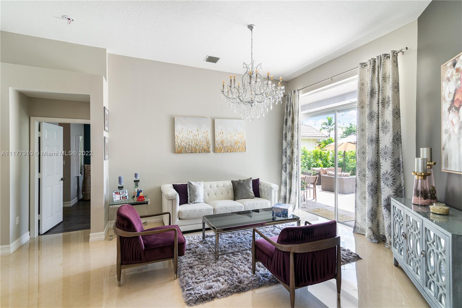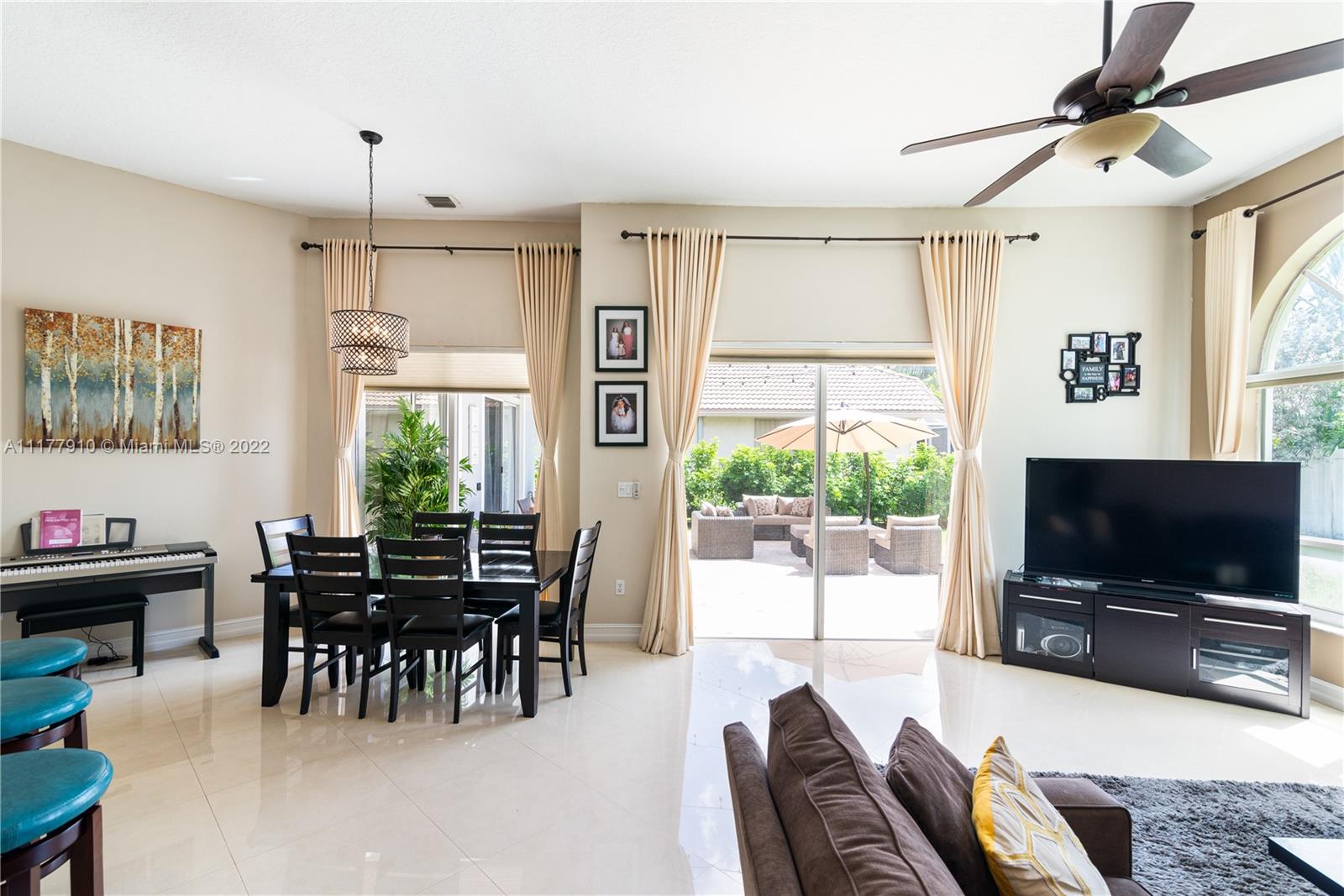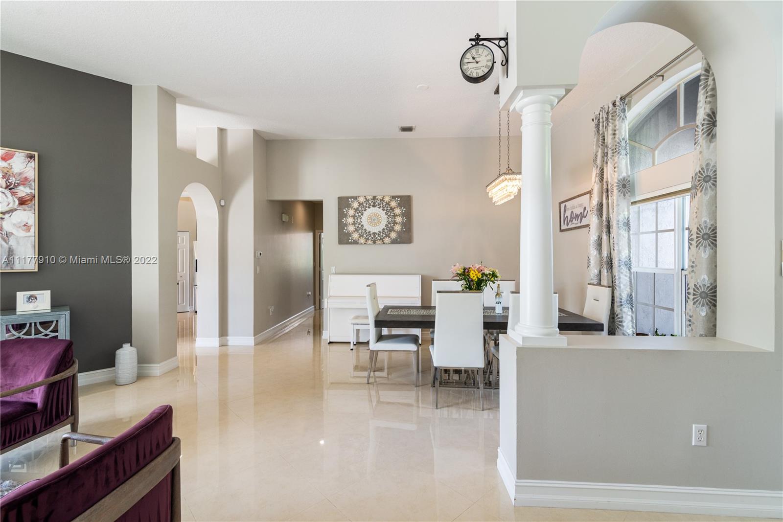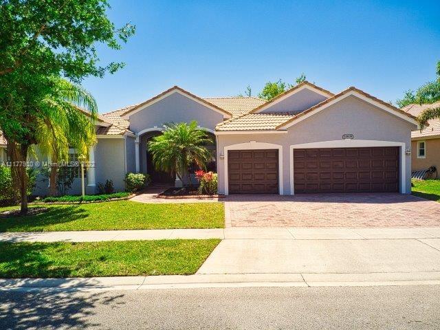 **FABULOUS "YALE" MODEL IN SOUGHT AFTER PEMBROKE FALLS. **THIS POPULAR THREE-WAY SPLIT FLOOR PLAN FEATURES 4 BEDROOMS, 3 BATHROOMS, & 3 CAR GARAGE. **MODERN PORCELAIN TILE THROUGHOUT HOME AND NATURAL FINISH LAMINATE WOOD FLOORING IN BEDROOMS. **OPEN AND SPACIOUS KITCHEN WITH GRANITE COUNTERTOPS, WOODEN CABINETS AND STAINLESS-STEEL APPLIANCES, WINE COOLER, AND BRAND NEW FRIDGE **ELEGANT MASTER SUITE WITH 2 WALK-IN CLOSETS ** EXTENDED PATIO WITH BEAUTIFUL TRAVERTINE DECK PERFECT FOR ENTERTAINING * NEWER A/C UNIT AND WATER HEATER * EXTERIOR FRESHLY PAINTED IN 2022 **"EVERYTHING YOU NEED" GATED COMMUNITY WITH AMAZING RECREATION CENTER ** COMMUNITY OFFERS NATURAL GAS TO THE RESIDENTS ** HOA INCLUDES FIBER OPTIC CABLE, HIGH-SPEED INTERNET ACCESS, ALARM AND MUCH MORE!!