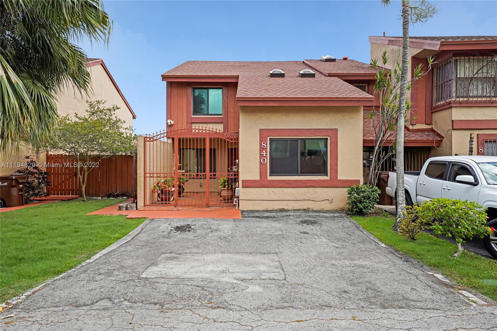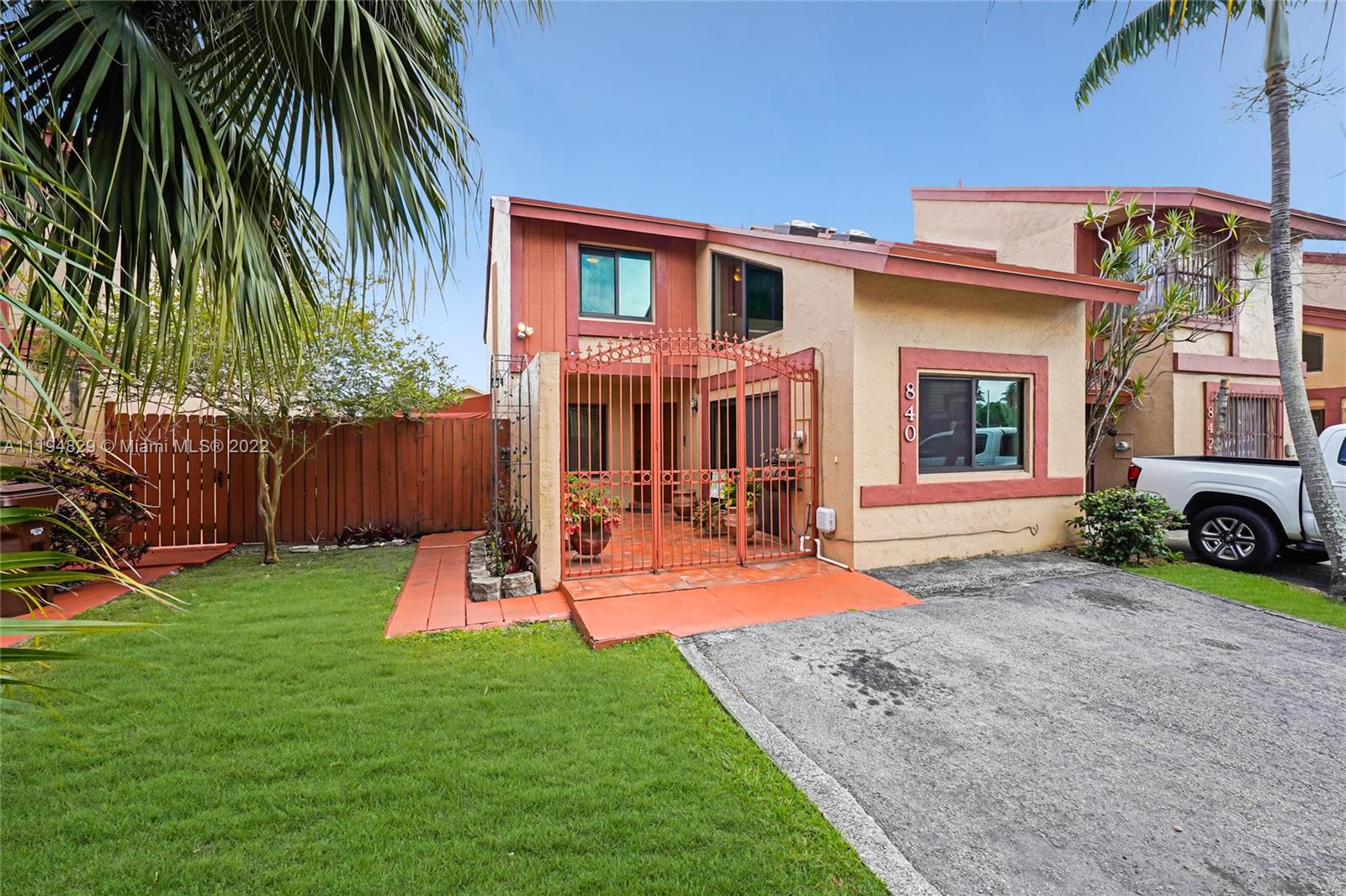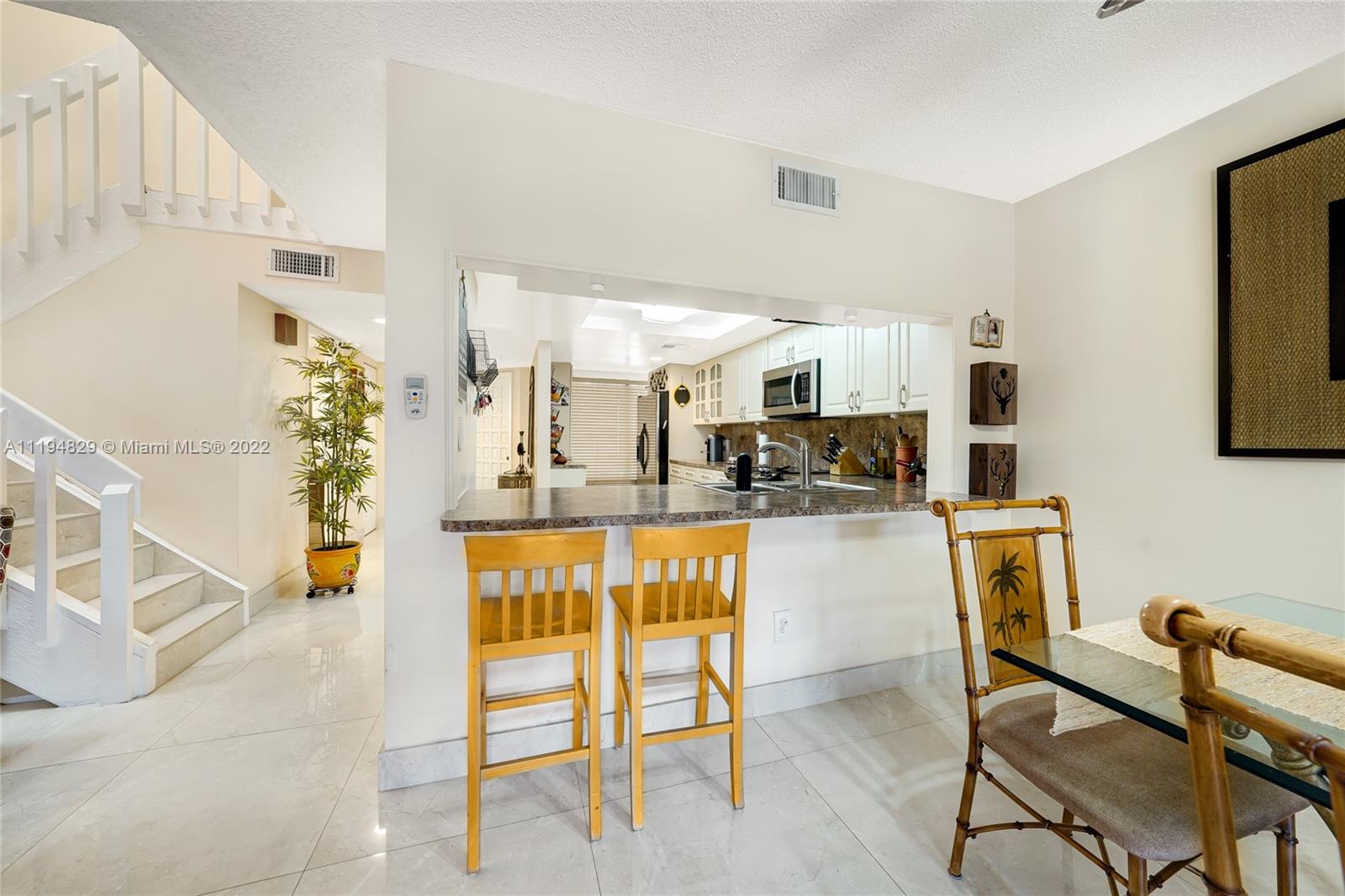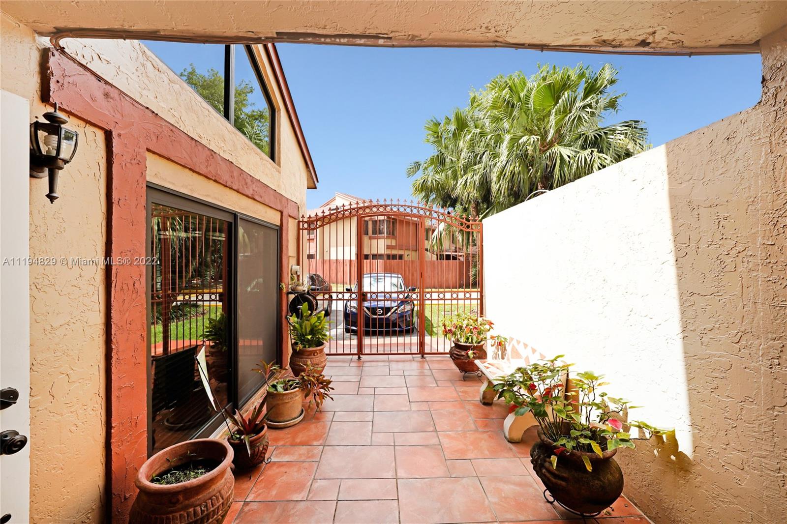 Prepare to fall in love with this beautiful townhouse! Located on a corner unit this lovely abode offers a front courtyard and charming entrance. On the first floor you have a full bathroom, charming open concept kitchen overlooking the living quarters with plenty of natural light coming from the French doors that lead you to the back patio. Large den with 4 skylights and high ceilings. This space can be used as an office, children's playroom or additional bedroom/family room. Upstairs you have 1 full bathroom and 3 bedrooms including the primary suite where you have an additional personal restroom. Private fenced backyard with great space for entertaining or simply enjoy the wonderful year-round weather. Impact windows and porcelain tiles throughout. Community offers pool and clubhouse.
