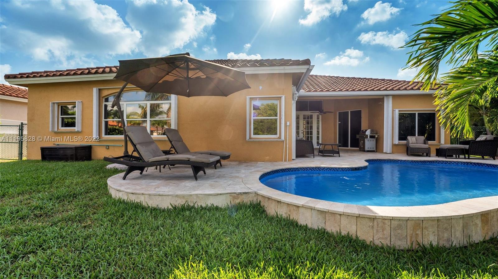 Come see this lovely 4 Bed 2.5 Baths Mediterranean home with impeccable landscaping in the highly desirable Spring Valley at Waterside neighborhood of Pembroke Pines. The home has a large kitchen with stainless steel appliances, walk-in pantry, open concept including an island. Tile throughout the home. High ceilings, oversized living and formal dining room area with beautiful custom crown molding. This home has a beautiful resort style saltwater pool and a fenced back yard facing a protected wooded reserve for ultimate privacy. Master bedroom suite is huge that encompasses one whole side of the home. Two car garage and a laundry room with washer and dryer. As an added bonus the entire roof is in the process of being replaced .It truly is a must see gem, don’t miss out!!