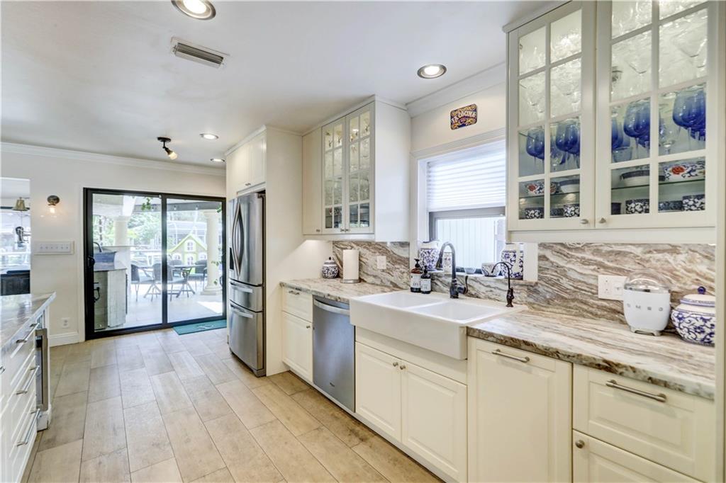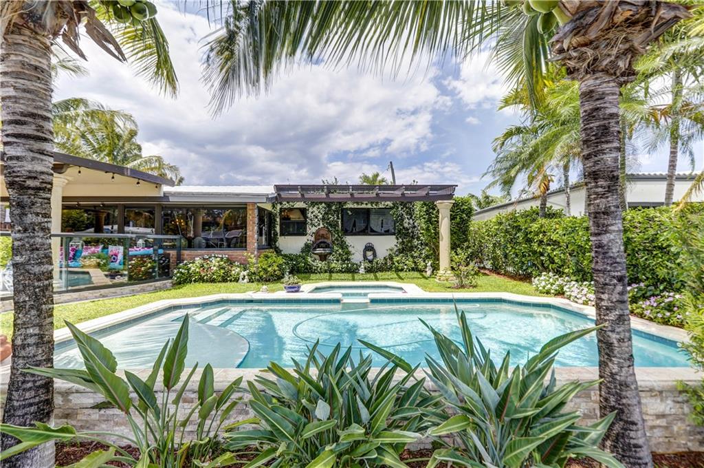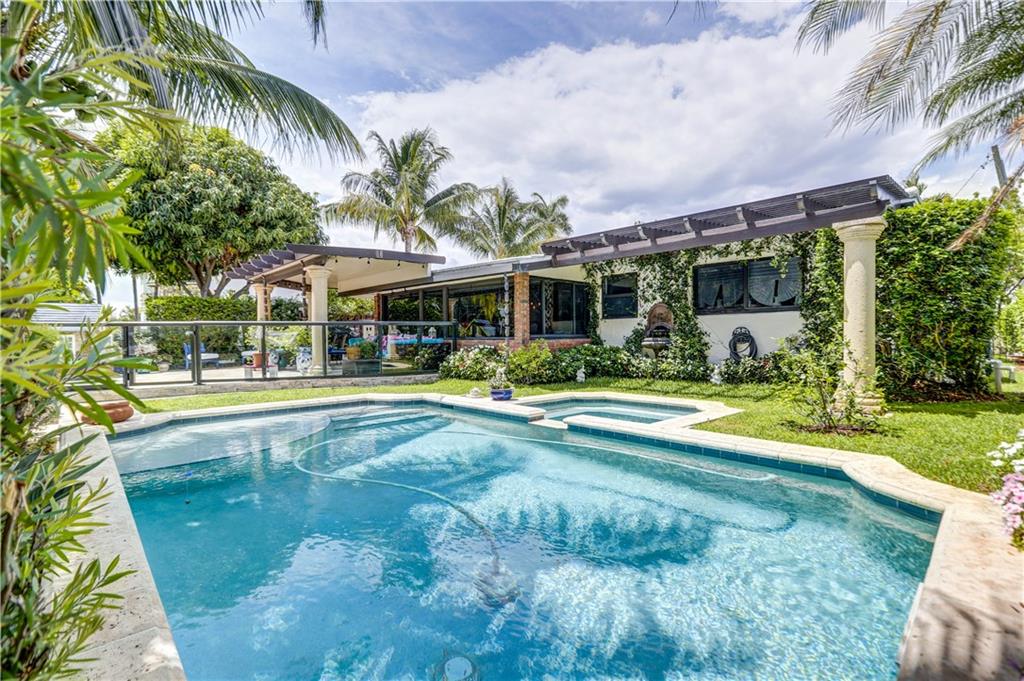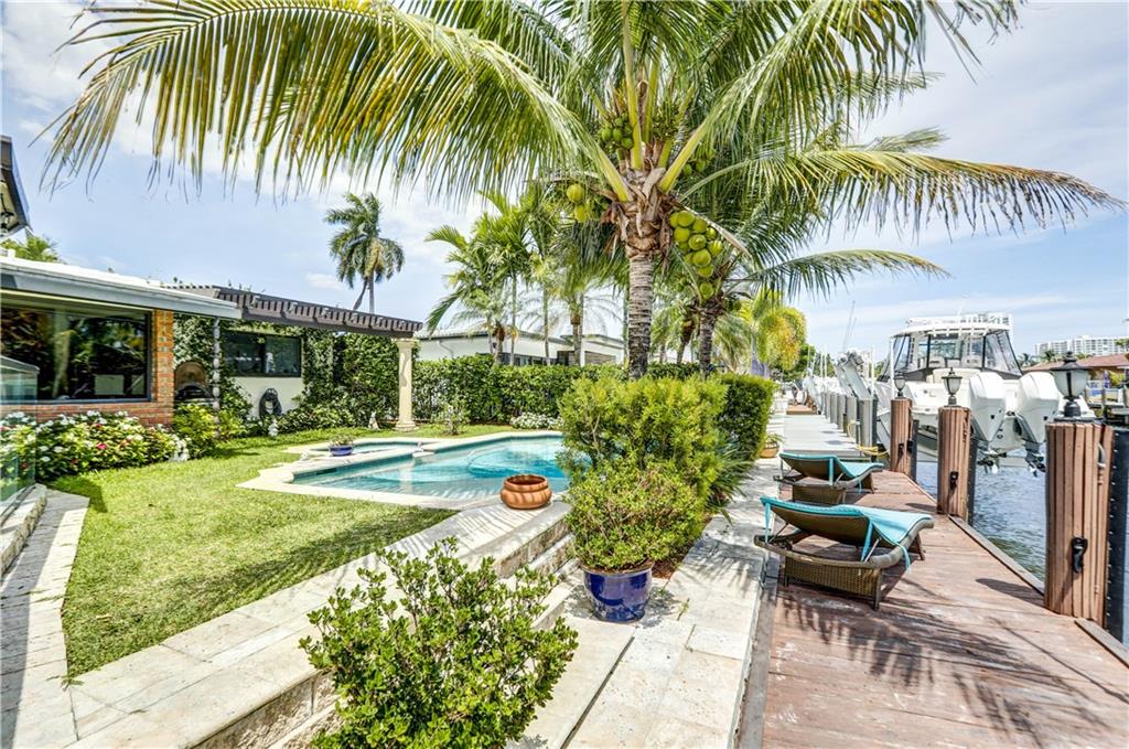 Tastefully updated waterfront home in Pompano Isles. 60' of direct ocean access right off the intracoastal waterway. This home has 3 bedrooms & 2 baths Spacious open floor plan perfect for entertaining indoors and outdoors. Newer kitchen with large island with granite counters, white coastal cabinetry & stainless steel appliances has 2 ovens for the person that loves to cook with wine cooler. Italian porcelain plank flooring throughout living areas and hardwood in bedrooms. Great outdoor space with covered lanai, outdoor bar, heated saltwater pool & spa, tropical landscaping and waterfront dock to accommodate your boat. All impact windows and doors. Brick paved circular driveway and courtyard entry with privacy gate. Near all restaurant's, stores, View this home, love it, buy it !