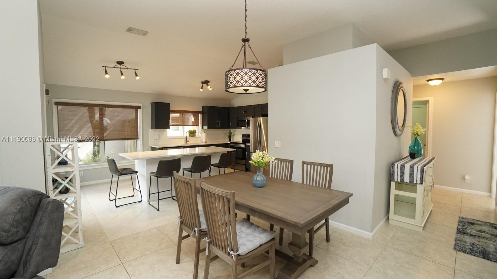 WOW! Beautifully updated 3 bed 2 bath, 1 story, single family home in sought after Bridgewater. Entire home professionally painted. Spacious open floor plan with 10’ volume and vaulted ceilings. Large neutral 24" tile throughout. Upgraded kitchen with wood Shaker cabinetry, S/S appliances, quartz countertops, subway tile back splash, center island w/ seating for 4 plus large pantry closet. Spacious main bedroom; totally remodeled main bathroom with double sinks and 5' custom subway tiled shower; indoor laundry room; epoxy painted floors in 2 car garage; impact sliding glass doors to screened lanai with water/garden views; 2009 tile roof; 2021 A/C, accordion shutters and more! Centrally located to major roads, shops, & dining! Multiple Offers Received. Highest and Best Due May 2 @ 5:00 pm.