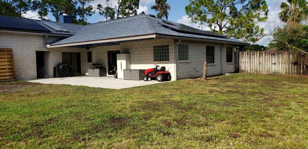 1 1/3 acre corner lot in the Acreage. 4 bed 2 Bath has SO much to offer! Inviting full length covered front porch. Open, spacious living area w/vaulted ceilings. LG kitchen w/breakfast bar opens to Family Room w/beautiful working brick fireplace to really bring out the charm. 2020 new shingle roof & seamless gutter system installed. 2020 Complete Air Conditioner System Replaced & Water Filtration System BOTH w/Antibacterial & Antiviral UV lights. 2020 Roof Mounted Solar Electric System installed incl. 2 solar powered attic fans and H20 heater w/electric heating element backup. Fully fenced backyard. Side turned Xlarge 576 SF 2 car garage W/12' doors. 2021 8 camera security system w/motion sensor, night vision. avocado tree. MUST SEE! PLEASE read supplement as too much to list here.