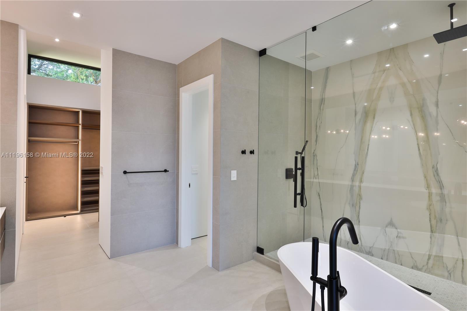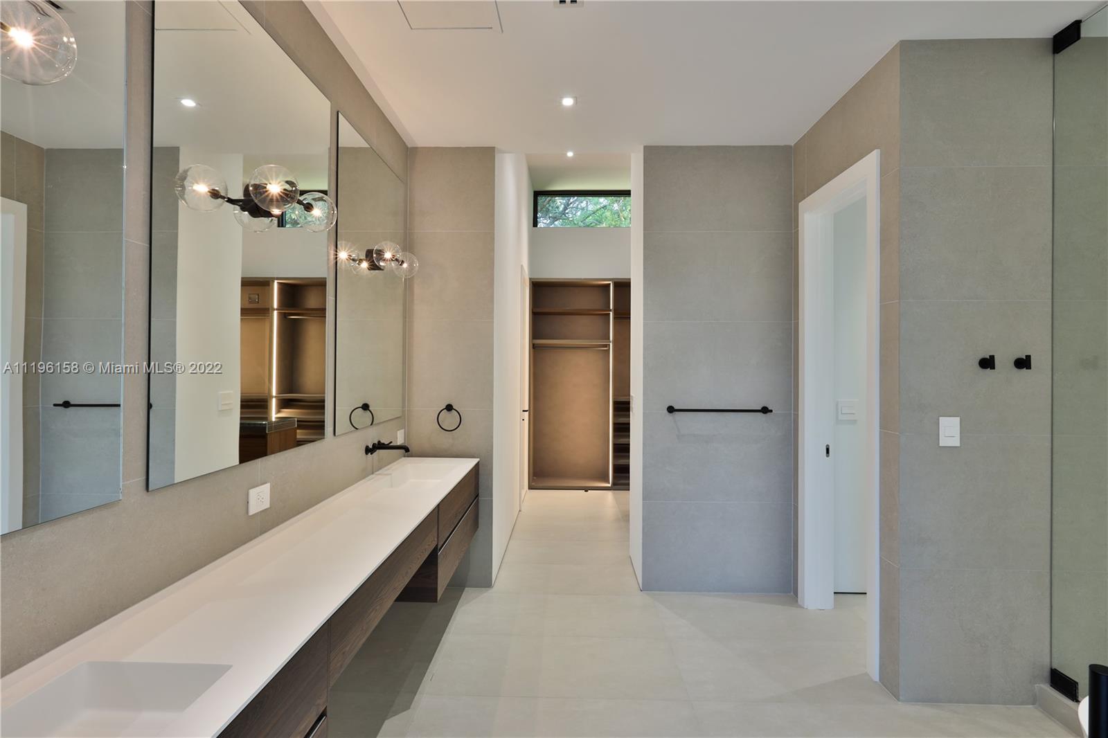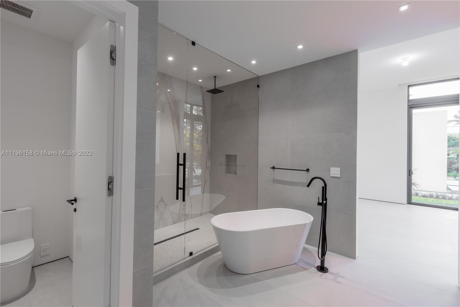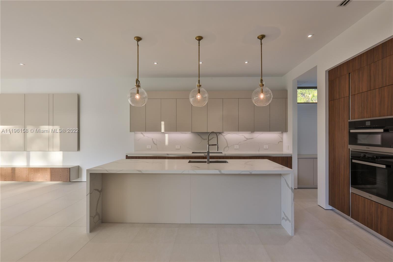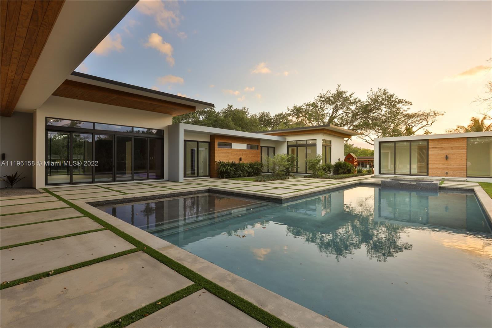 Welcome to this brand new modern construction in the heart of Pinecrest. This 5 bedroom, 5.5 bathroom fully gated one story masterpiece sits on a 38,766 sqft lot. The main entrance greets you with an impressive 11ft hurricane proof Mahogany pivot door. As you enter you will encounter high ceilings ranging from 10 to 14 ft throughout surrounded by all impact windows. Comes fully equipped with ITALKRAFT kitchen cabinets, quartz counters and Miele, Wolf and Liebherr appliances. All fully ensuite bedrooms are completed with MIACUCINA closets. No need to leave your home with a resort style backyard setting with a large pool and summer kitchen. A detached VIP 1 bed, 1 bath suite is perfect for guests. A 2 car garage with enough height for lifts is aesthetically located on the side of the home.