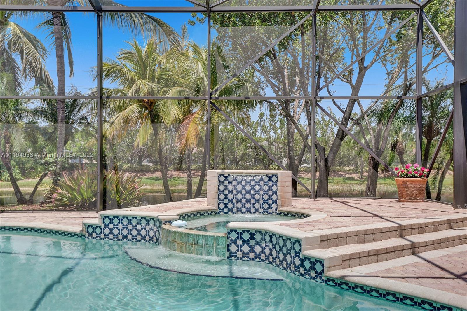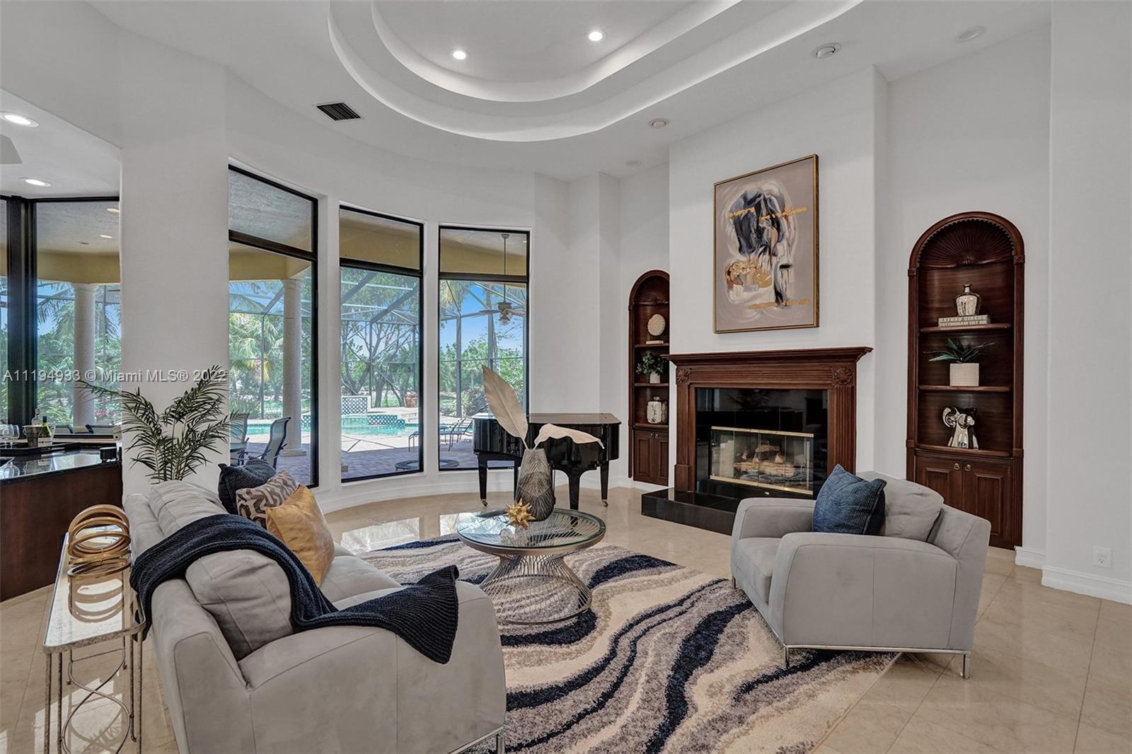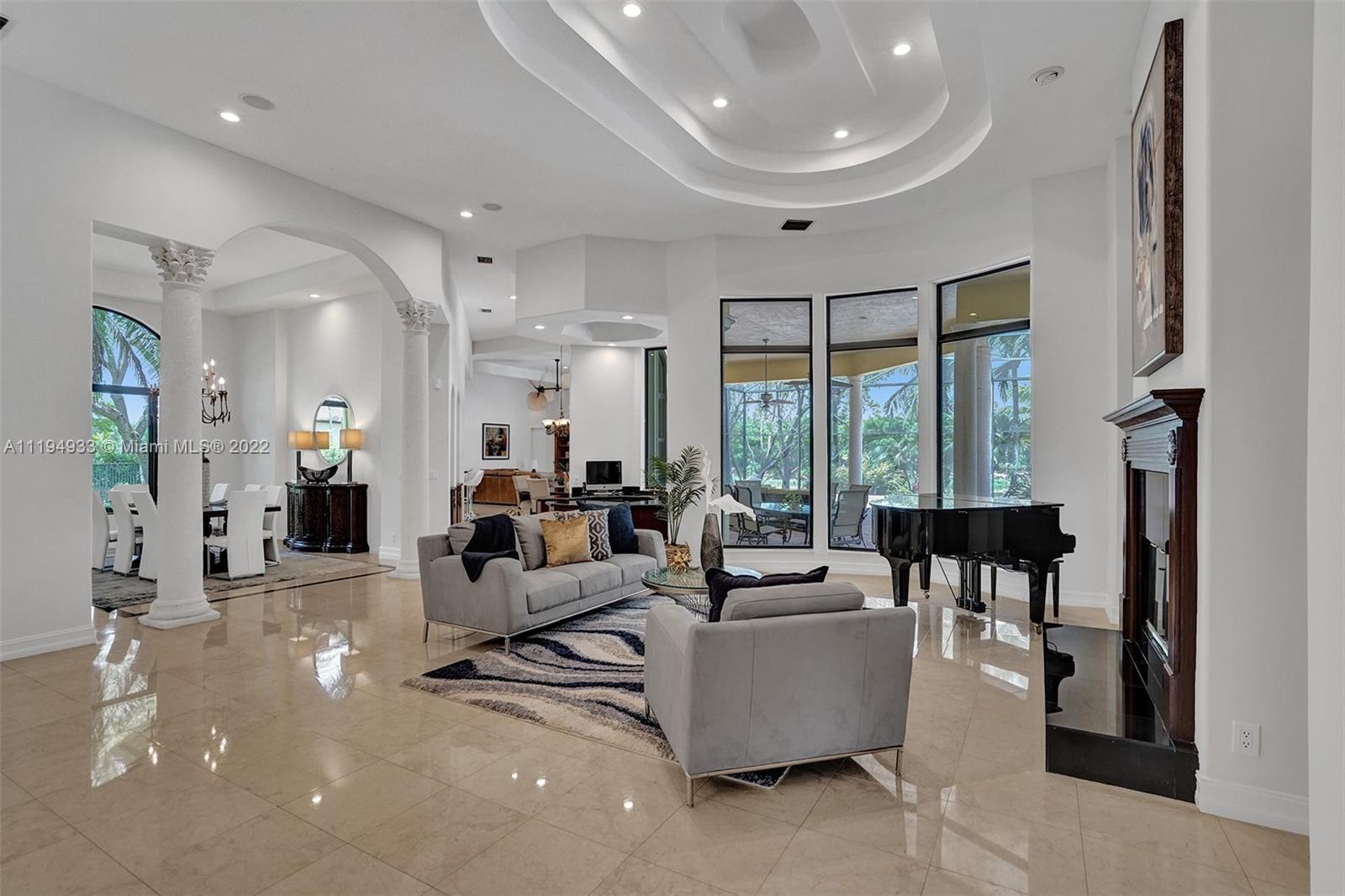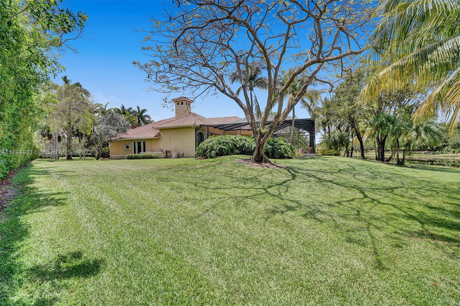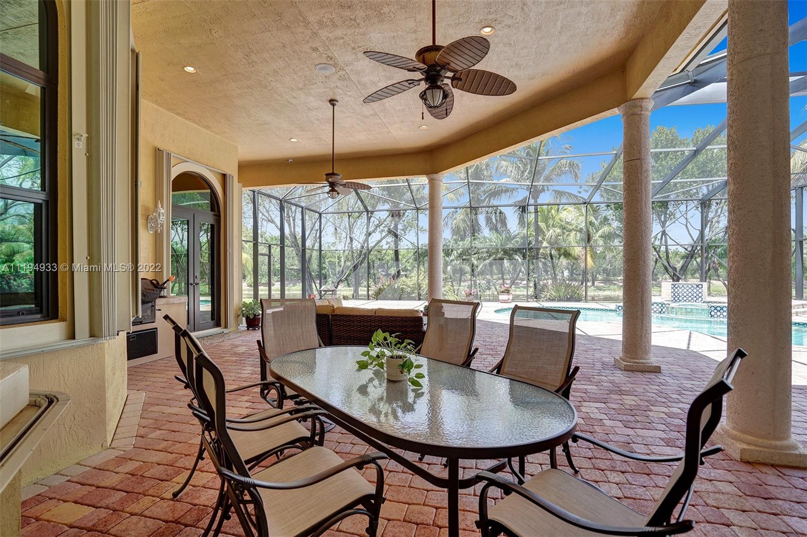 Stunning custom-designed home in the gated community of Windmill Lake Estates that sits on a 1+ waterfront acre. This home features NEW impact windows and doors. 5 bedrooms, 5.5 baths, a formal office, office in the master bedroom, custom theatre room, and den. Newly screened expansive paver patio and salt pool/spa area w/ summer kitchen, 3 car side garage, long circular driveway w/ grand porte-cochere. Marble in all living areas, wood in bedrooms. Sunken bar w/ wine fridge. Fireplace in living rooms and master bedroom. Freshly painted interior. Gourmet kitchen w/ center island, granite countertops, spacious pantry and top of the line appliances. Master bedroom w/ soaring ceilings, and 2 large walk-in closets w/ cabinetry. Marble master bath w/ jacuzzi, bidet, and large walk-in shower.