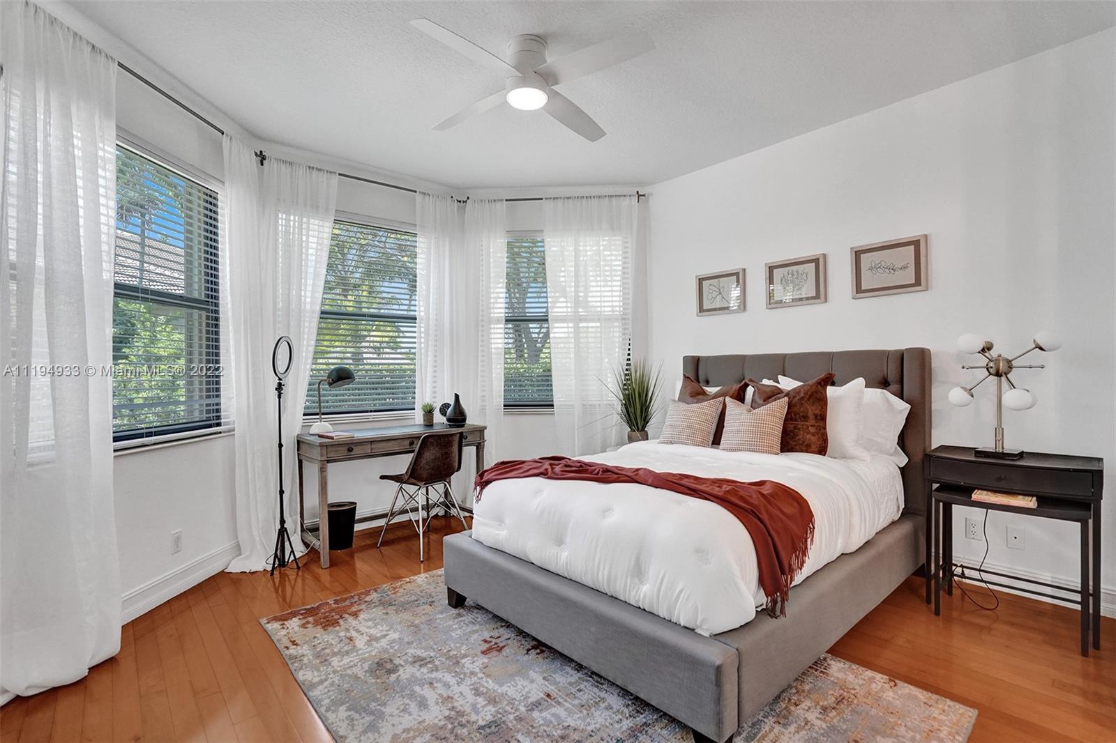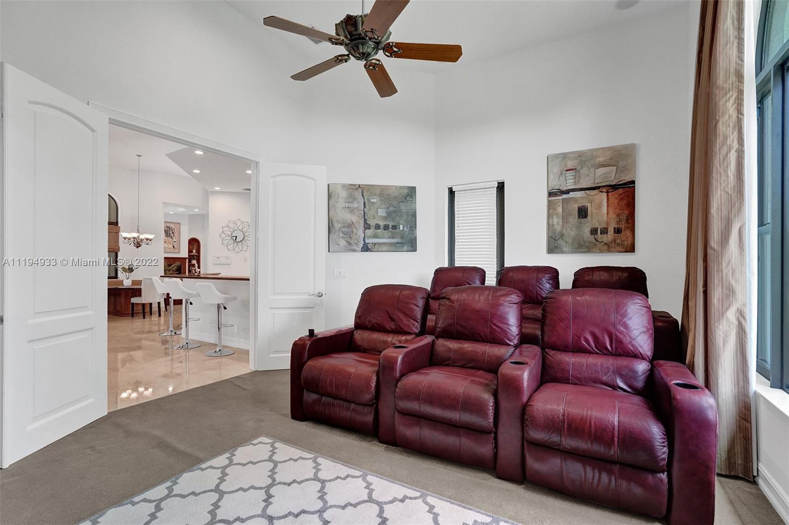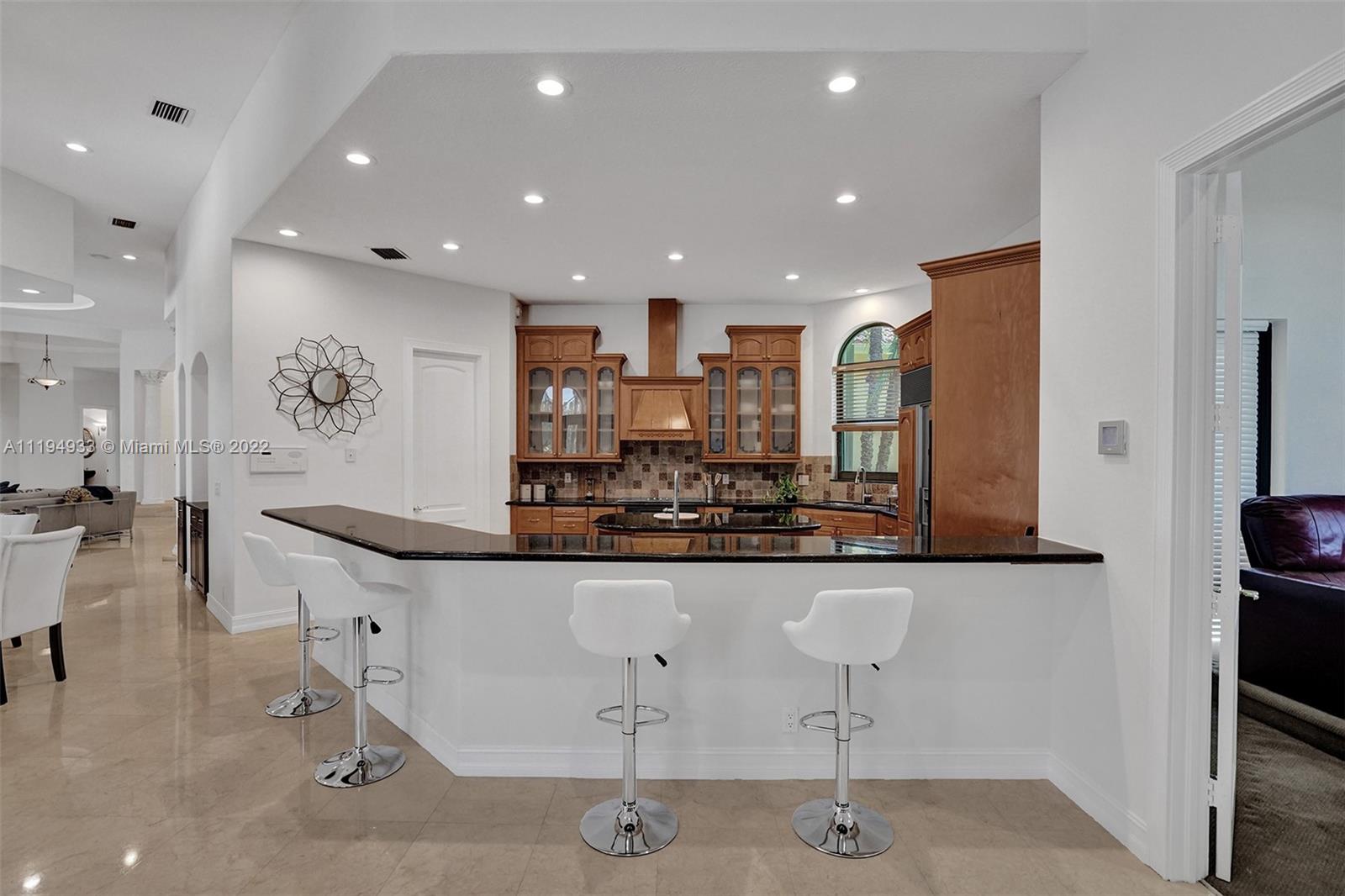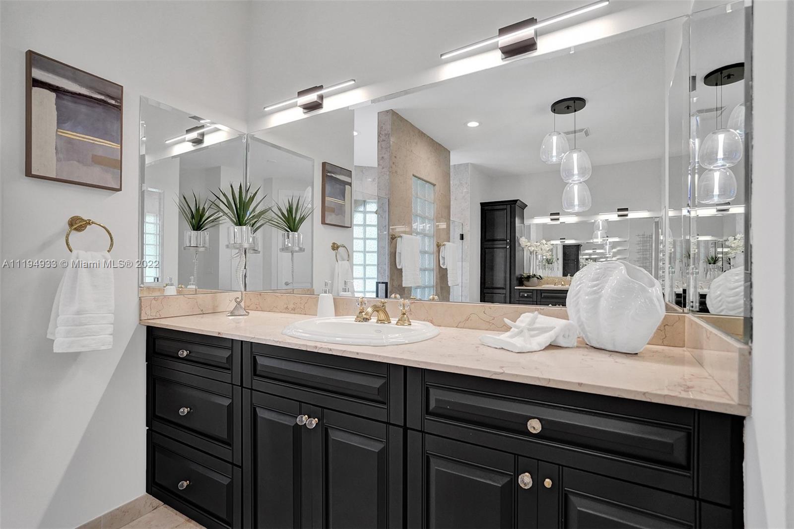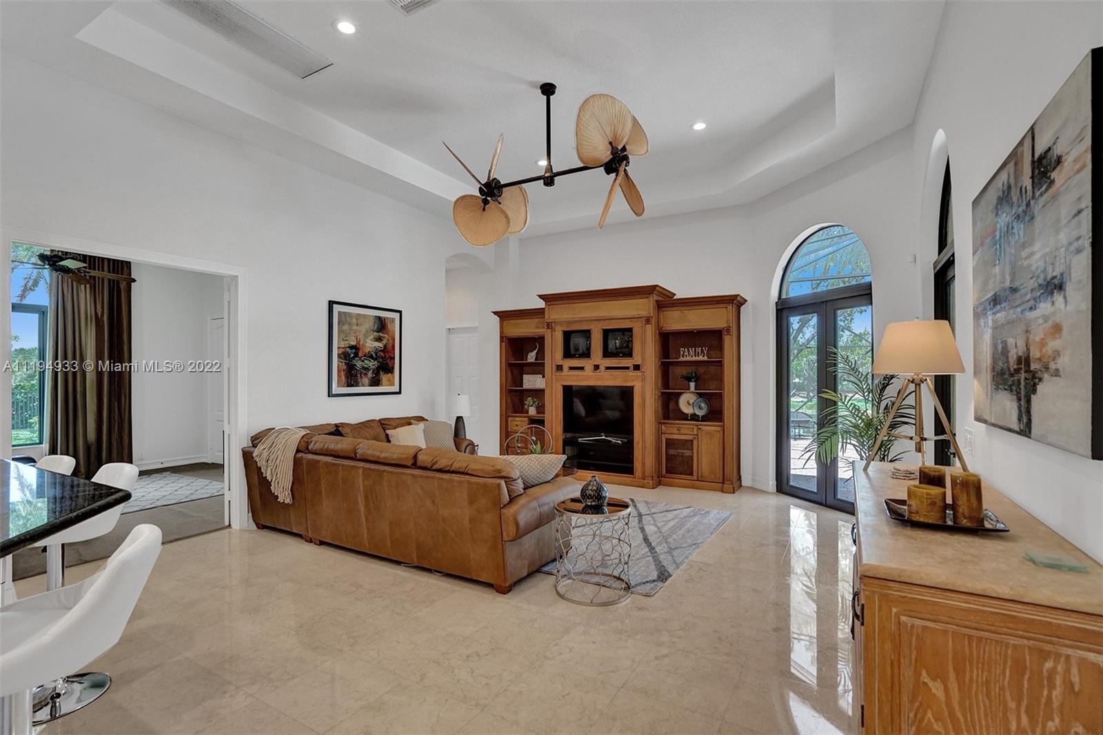 Stunning custom-designed home in the gated community of Windmill Lake Estates that sits on a 1+ waterfront acre. This home features NEW impact windows and doors. 5 bedrooms, 5.5 baths, a formal office, office in the master bedroom, custom theatre room, and den. Newly screened expansive paver patio and salt pool/spa area w/ summer kitchen, 3 car side garage, long circular driveway w/ grand porte-cochere. Marble in all living areas, wood in bedrooms. Sunken bar w/ wine fridge. Fireplace in living rooms and master bedroom. Freshly painted interior. Gourmet kitchen w/ center island, granite countertops, spacious pantry and top of the line appliances. Master bedroom w/ soaring ceilings, and 2 large walk-in closets w/ cabinetry. Marble master bath w/ jacuzzi, bidet, and large walk-in shower.