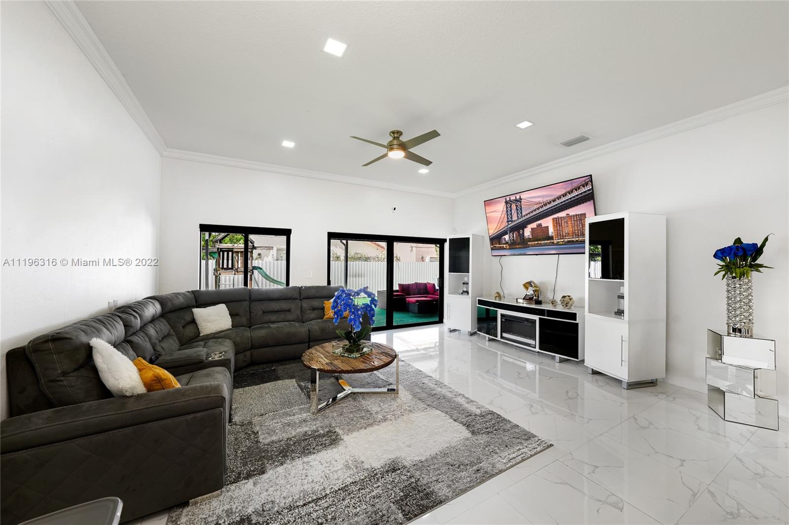 The search is over, your dream home has just hit the market! This lovely abode was completely remodeled and the love and care put into this home shows! Ideal space for any family with spacious living room with recessed lighting throughout, dining area, wonderful kitchen with state of the art SS appliances, Impact Windows, ample cabinet and counter space, updated bathrooms with frameless lighted mirrors, master bathroom with oversized glass shower. Additional space for kids playroom/ office/den. Great fenced, private backyard with covered patio that is perfect for enjoying outdoor dining, BBQs, or simply lounging and enjoying the weather! Nearby you have everything you need from good schools, parks, shopping and more.