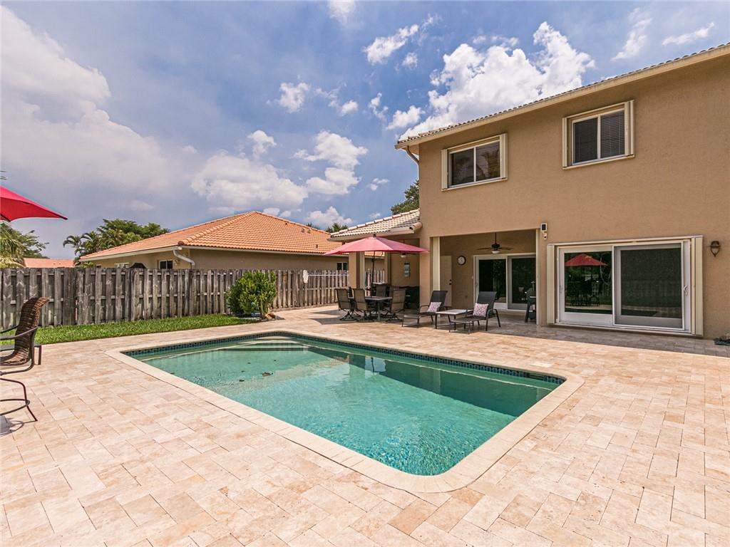 Outstanding opportunity to own this amazing home! This spacious home has 5-bedrooms & 3.5 bathrooms. One bedroom & full bath on the main floor. Kitchen was updated with granite counters & solid wood cabinets. Separate laundry room off kitchen. Hurricane shutters throughout plus impact sliding doors. Neutral tile flooring on the main, wood flooring upstairs. Make memories in the huge backyard, it's a tropical oasis with a private pool, a nearly 1,200sf travertine deck and a Chickee hut built in 2016 with electric! Plumbed for an outdoor kitchen. The manicured lawn has an electronic irrigation system that draws water from the canal. Garage has built in cabinets and Swisstrax flooring. Too much to list - see additional features sheet. Hurry this won't last! Professional pictures coming soon.