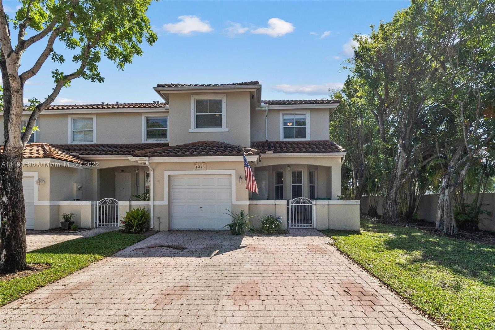 Rarely available Corner Townhome in the Very Desirable Gated Community of DORAL CHASE. Ideal floor plan with featuring 4 bedroom, 2 full bathroom, 1 half bath. Ceramic tiles through the 1st floor and hardwood floors upstairs. Hurricane Shutters, Laundry room, and One Car Garage plus large driveway with plenty of parking. Enjoy all the wonderful amenities The DORAL PARK COUNTRY CLUB has to offer (Beautiful Clubhouse, Playground/Splash Park, Gym, Basketball, Tennis, Tiki Bar, Huge Pool & TRUMP’s Silver Fox Golf Course…