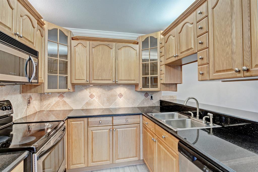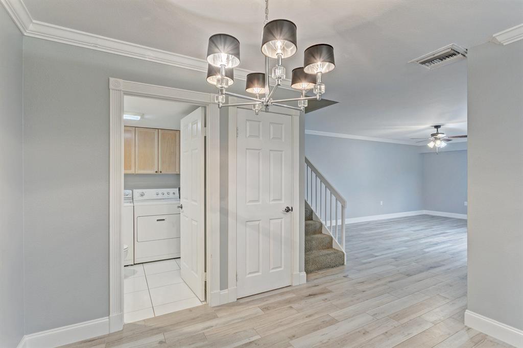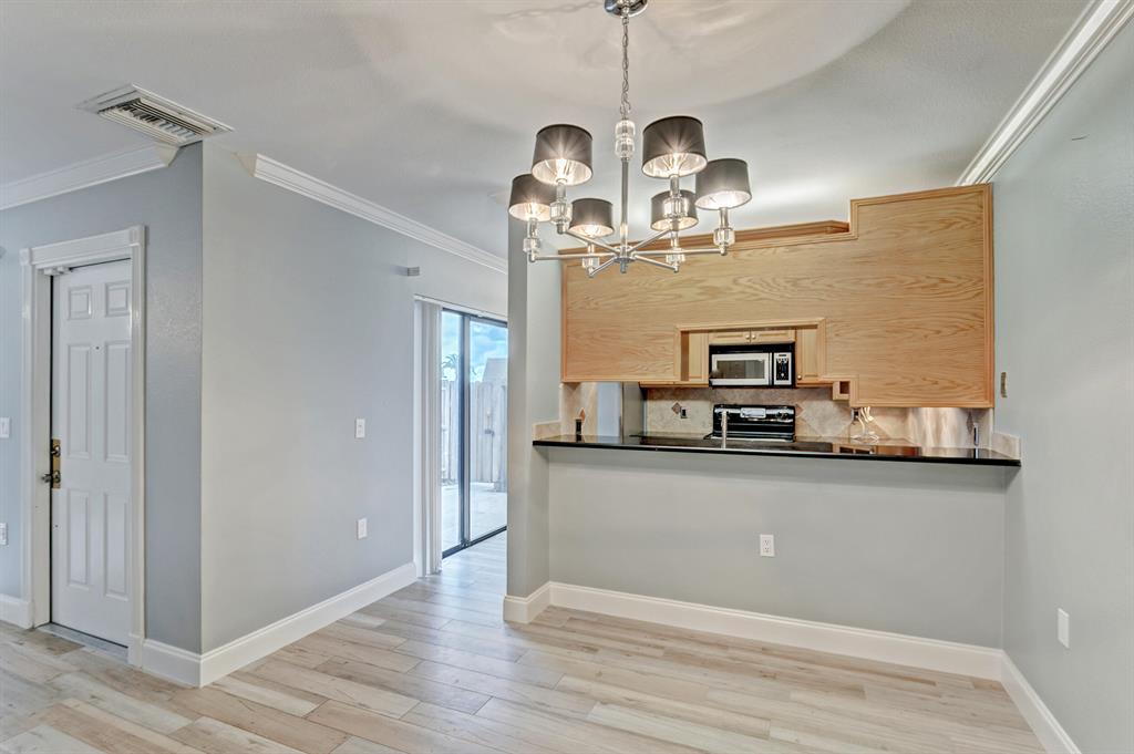 Welcome to this beautiful townhome in the highly desirable community of Sandalwood Lakes. Centrally located in the heart of West Palm Beach, this well-maintained townhome features smooth ceilings, wood-look tile flooring, newer interior paint, crown molding throughout 1st floor, and newly renovated bathrooms. Spacious kitchen fully equipped with an abundance of light wood cabinets, Quartz counter tops, stainless steel appliances, and decorative tiled backsplash. Downstairs powder room redone with new vanity, lighting, and mirror. Plush carpet on steps leads to 2 generous bedrooms, each with wood laminate flooring and their own private balconies! Master suite features huge walk-in closet, redone master bath with dual sinks surrounded by tasteful granite counter tops, new vanity,