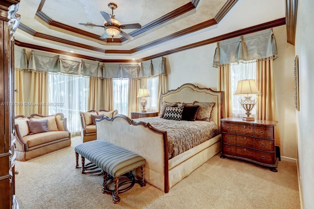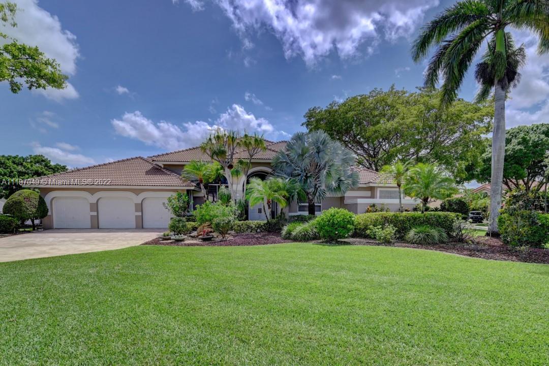 Wonderful opportunity to own this 4 bedroom 4 bath home in the guard gated golf community of Eagle Trace. This 3-car garage gem has approx. 3600 sf under air and is situated on a double cul-de-sac on one of the largest lots in Eagle Trace! Extensive renovations, upgrades and designer finishes throughout. In addition to 4 bedrooms and 4 full baths, there's an office/library, a loft, and a large enclosed pool and patio. Marble floors and 16' ceilings throughout the main living areas. Granite kitchen with Wolf cooktop, Bosch appliances, Sub-zero refrigerator. Furnishings available.