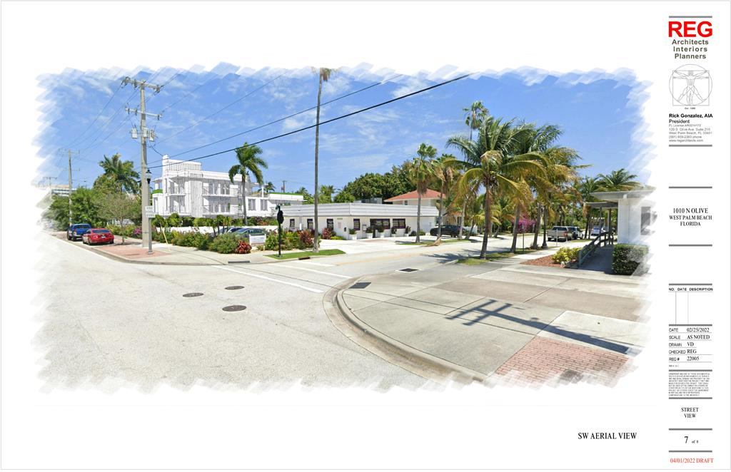 8750 SF Lot, 70x125 ; Zoned for both Commercial and Single Family. Possible Tear-Down, also being sold as Land/Acreage. Includes Renderings for 3 Story Modern/Art Deco Commercial Building totaling 6940 SF ; Includes 1050 SF on the top floor Residential Living. One Block West of the Intracoastal, Two blocks South of HSS, One block East of Tortoise One, 264 Unit Condo/Apartment Complex (Coming Soon)