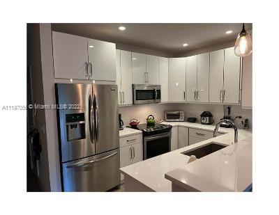 Total remodel in 2014 , Gated Community in east Hallandale Beach. Close to Beach ,Shopping, Aventura Mall, Porcelain tile main floors, carpeting in Bedrooms, new Quartz counter tops in kitchen and bathrooms. frameless glass shower and tub enclosures, impact windows and sliding glass door, double sink vanity in master bedroom. Refrigerator, Microwave, Garbage Disposal, Dishwasher, Electric Range, Washer and Dryer Security system and outside cameras'