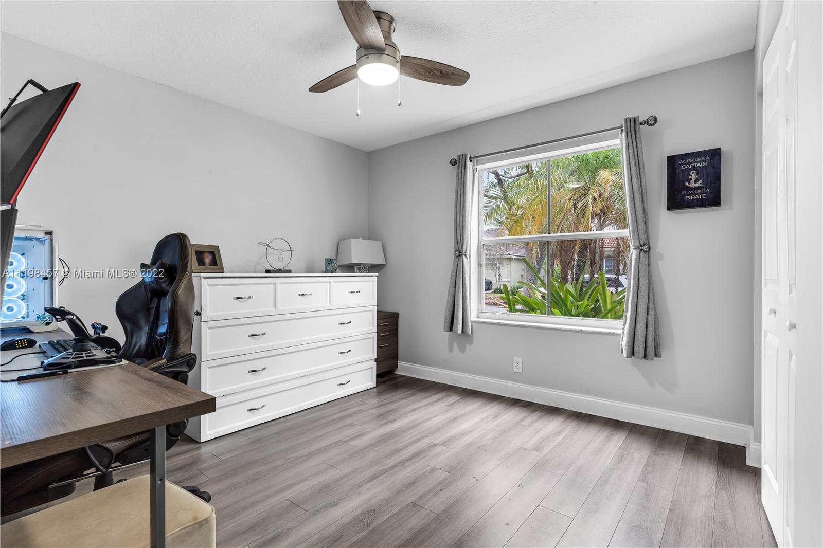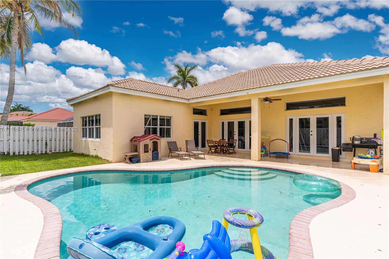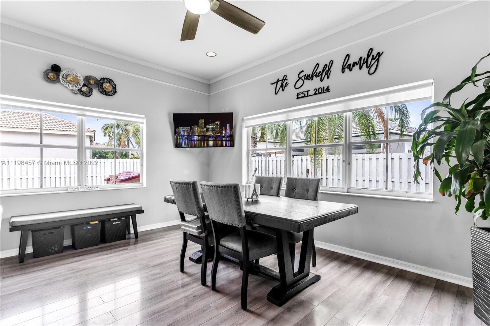 This is your chance to own a piece of paradise in Weston, Florida. This immaculate 4-bedroom, 2.5-bathroom home comes with a 2-car garage, laundry room with tub, and private backyard pool. You’ll be greeted by laminate wood floors, a picture-perfect living room view of your private backyard pool, and an adjoining poolside kitchen. The remodeled kitchen features stainless steel appliances, quartz countertops, and a new dishwasher. Have peace of mind with the Smart Home technology; Smart door lock, Ring doorbell, and security system. In addition, this property features: Automatic sprinkler system, and a new Energy Saving pool pump. Enjoy all that Weston has to offer in this family-friendly community complete with A+ schools. Close to Sawgrass Mills and the Turnpike for easy commuting.