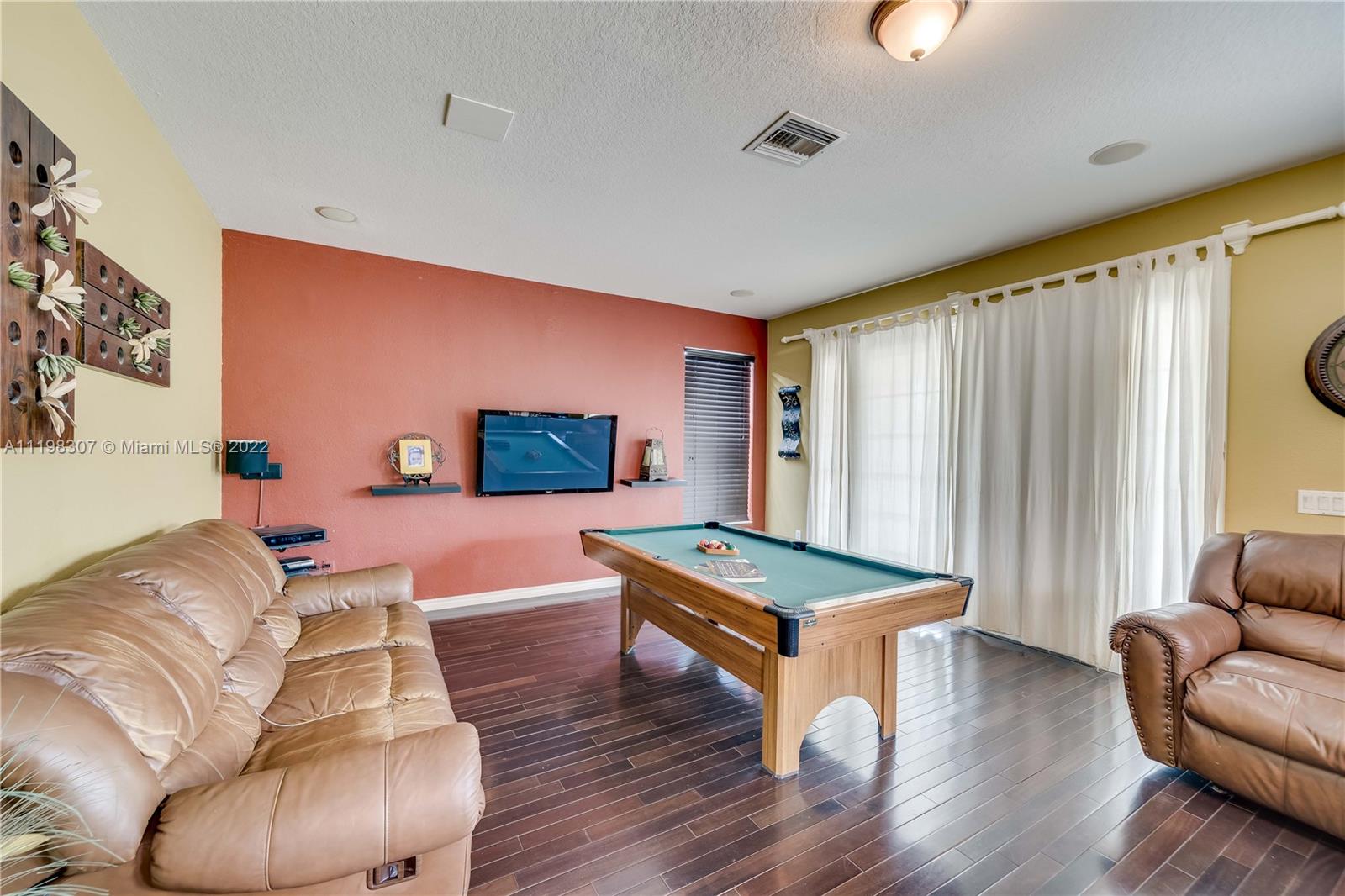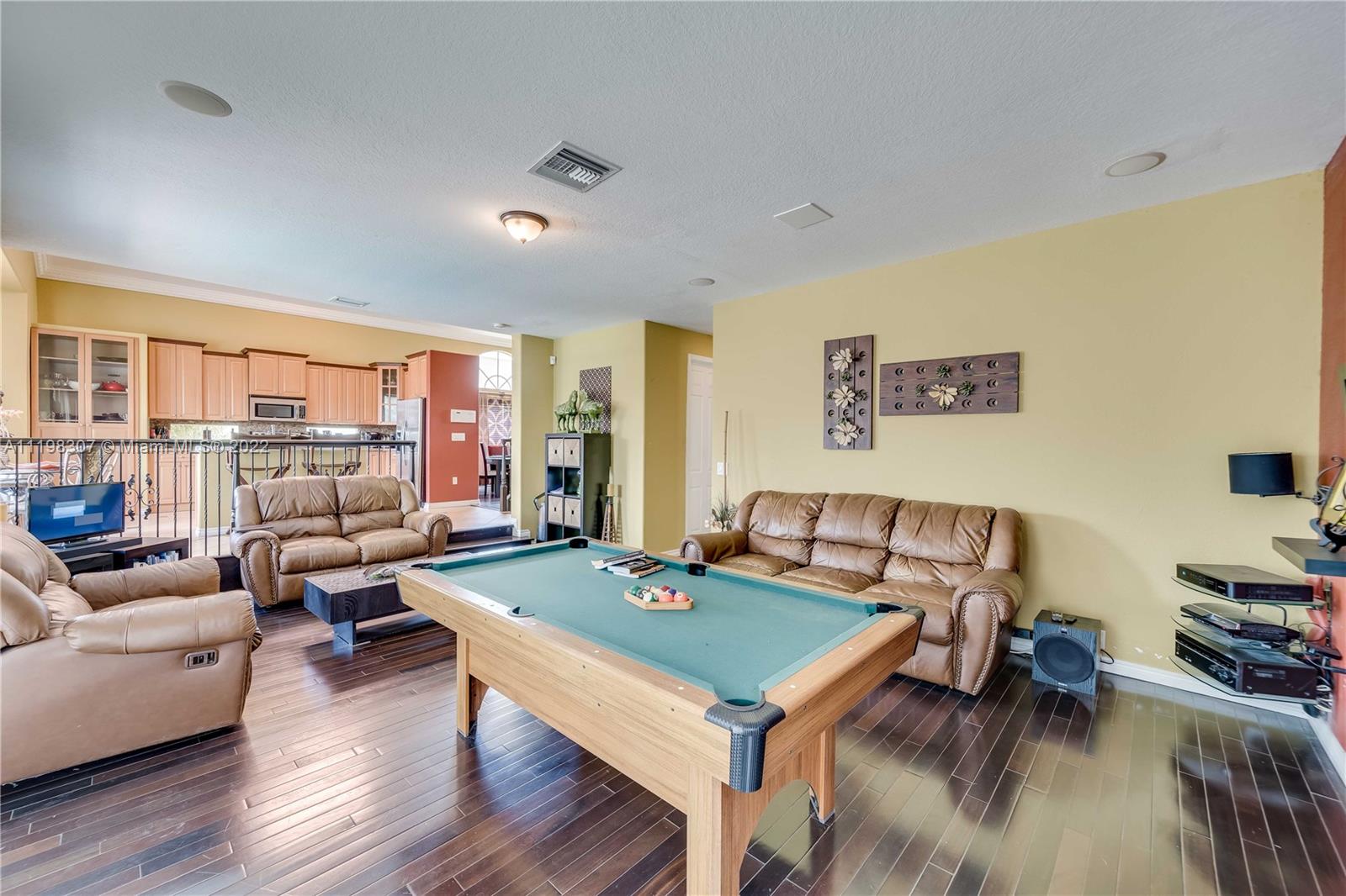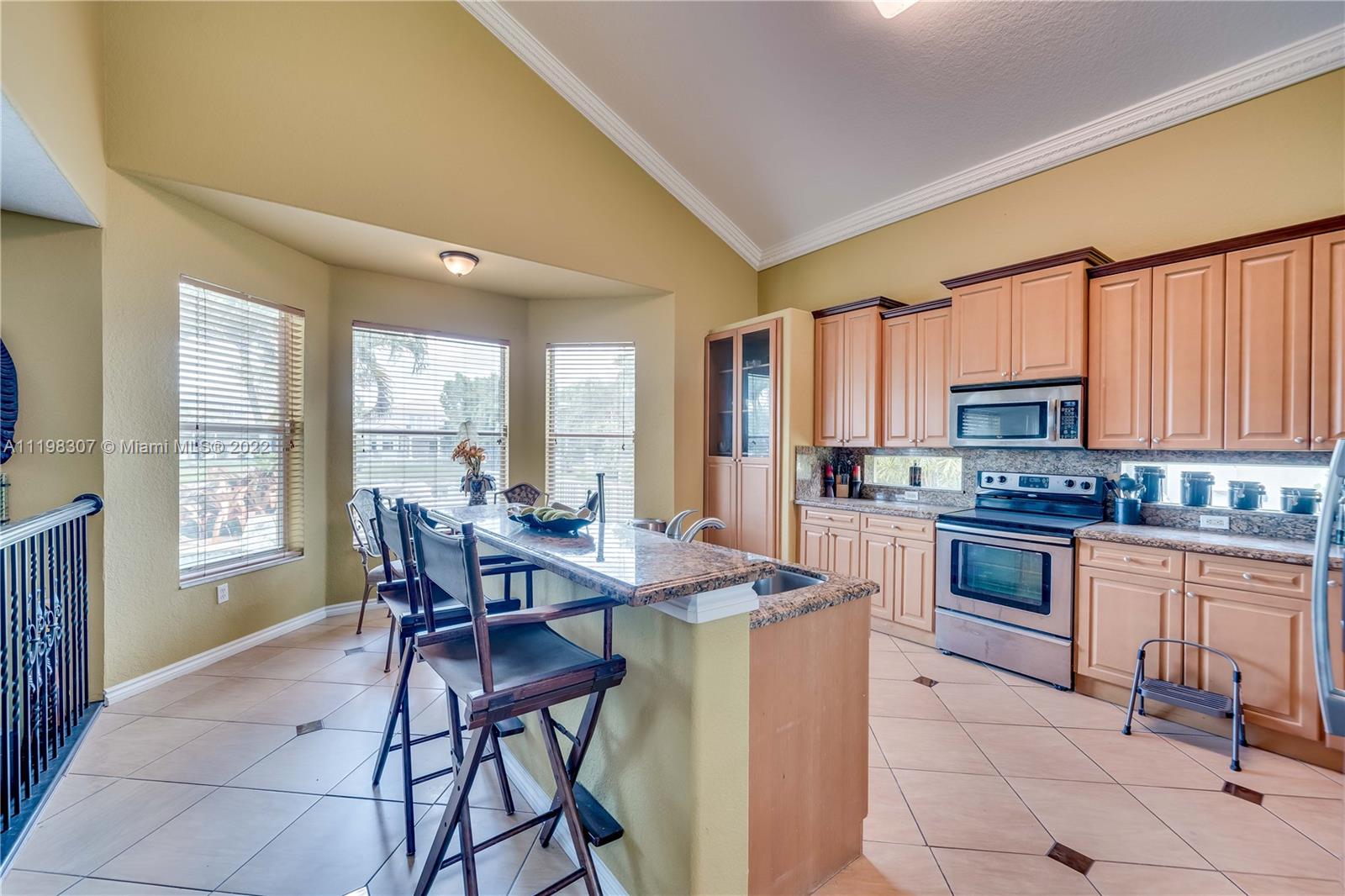 Beautiful 4/3 two story home in sought after guard gated Silver Isles! This home boasts volume ceilings, beautiful hardwood floors, and a bedroom and full bath on the first floor! The first floor offers expansive living areas ideal for any entertainer! Gourmet kitchen with granite counter tops and stainless steel appliances with views of the pool area and lake! Expansive master suite featuring his and hers bathroom , walk-in closets, and a private balcony overlooking lake and pool.