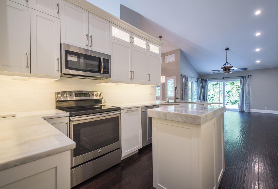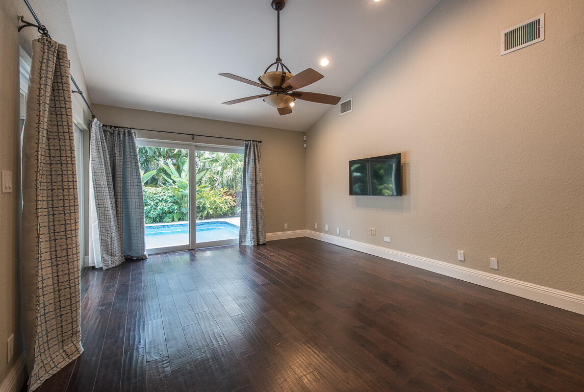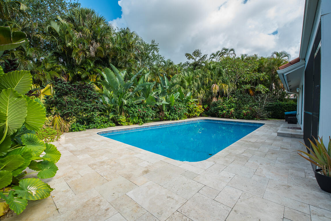 This impressive 4 bedroom 3 bath home comes complete with a heated pool and a 2 car garage as well as wood floors and plantation shutters throughout. Elegant vaulted ceilings meet you as you walk through the foyer. Recently remodeled this home is move in ready! Impact windows except for cabana bath door and block window. Roof 2012, A/C 2015, and updated outside electrical panel. Recently screened in back patio as well as stunning new landscaping around the pool. Enjoy the well manicured subdivision of Parkside along with the tree lined streets and manned gated community. Amenities include clubhouse, tennis courts, basketball courts, pickle ball courts and recently added volleyball courts. Great school district and near I-95, shopping, fine dining, beaches, Sugar Sand Park and more!