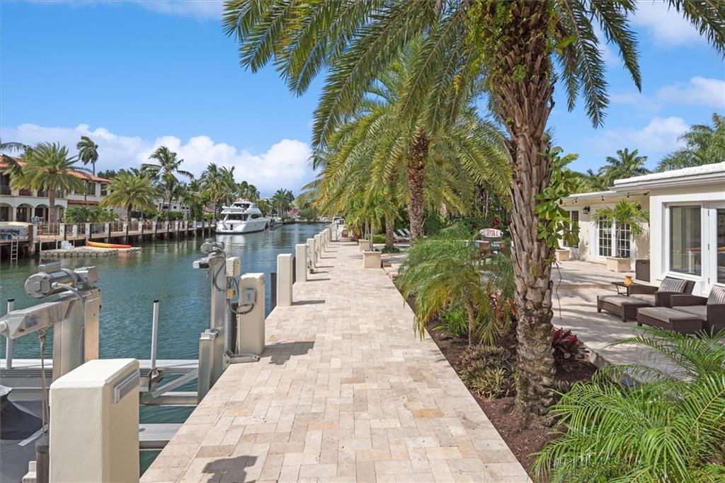 Lovely deep-water pool home in South Las Olas Isles. On a wide canal, boasting a 100’ cement dock, travertine patio areas and a luxurious free-form pool, the outdoor living spaces prove inviting. Renovated in 2011 with a full master suite added in 2015. All 4 bedrooms enjoy wood floors, walk-in showers found in 2 of the 3.5 baths. Living spaces plus the dedicated office space are tiled. French doors and Plantation shutters deliver a light, bright home. Ample storage with 6 cedar-closets, 2 walk-ins plus a built-in laundry room. A 2-car garage and circular drive compliment the exterior design and landscape of the one-level home. HVAC, electric, tankless hot water, plumbing, pool heater and equipment updated in renovations. Up to 90’ yacht dockage -1.1 miles to Ft. Lauderdale Beach!