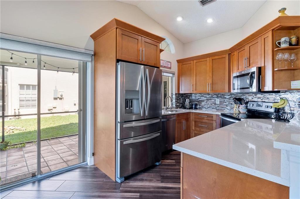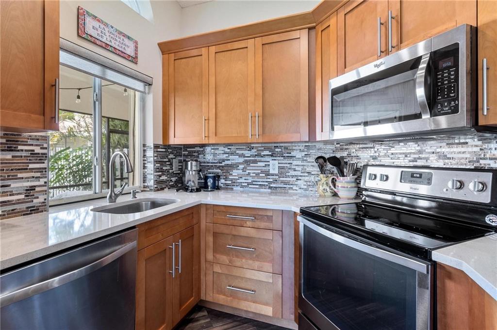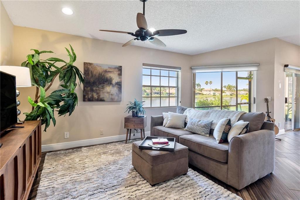 AMAZING VIEWS from this Lakefront home in Garden Homes, located in the heart of Weston's quiet neighborhood of Country Isles. Walking distance to Country Isles A Rated Elementary school, and short driving access to other top-rated schools (zoned for Cypress Bay high school). Walking distance to 2 beautiful parks. Mature trees and lush, meticulous landscaping throughout the area. Charming & immaculate 3 Bedrooms, 2 bathrooms w/screened-in patio & 1 car detached garage. Renovated kitchen with quartz countertops and stainless steel appliances. Both bathrooms have been renovated recently. Hardwood look-alike ceramic tile in living room, kitchen, and foyer; laminate in 2 bedrooms & Berber carpet the 3rd bedroom, used as office/den. Skylight ceiling window in the master bathroom. Community Pool.