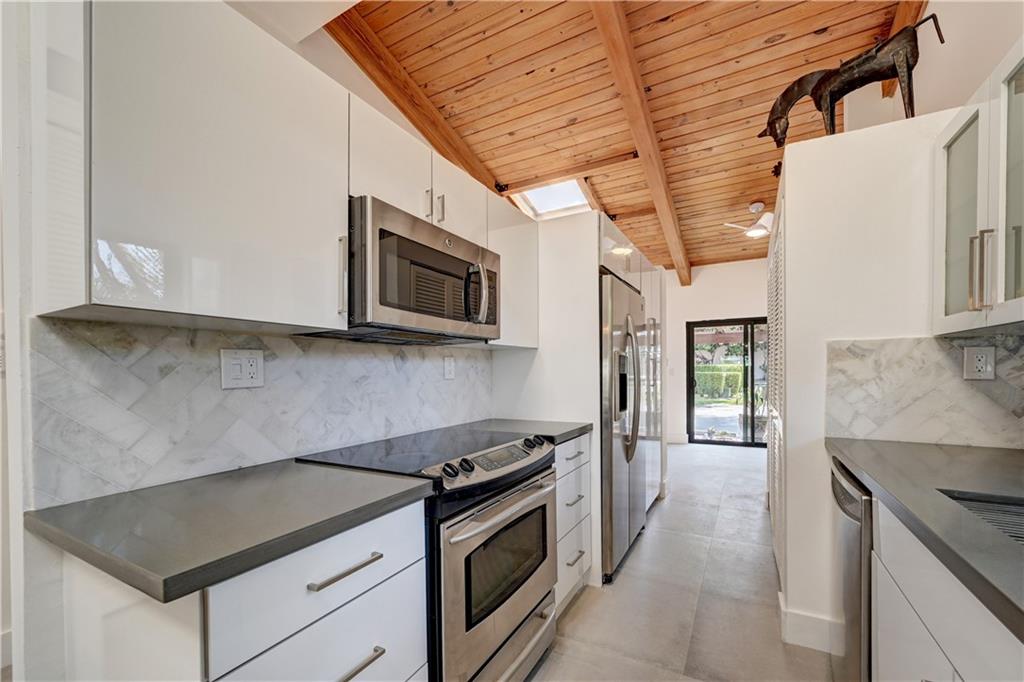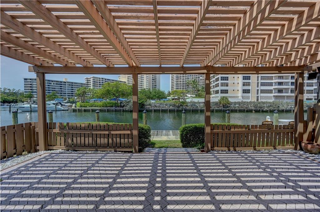 A true boater's paradise. Rarely available & completely renovated from top to bottom This gorgeous corner waterfront villa features intracoastal views & ocean breezes. Deep-water, 47-foot, private, deeded boat dock, direct intra-coastal & ocean access, with no fixed bridges. Recent renovations include:New Roof, Impact windows & doors, New water heater, New A/C, Porcelain tile floors throughout, interior doors, baths w/porcelain tile, wood cabinetry, quartz countertops. Kitchen w/ wood cabinetry, quartz countertops, and SS appls.& W/D. Skylights, open-beamed vaulted ceilings & a water facing covered patio, 2 assigned parking spaces in front of villa. Close to beach and entertainment. Community pool, tennis, racquet ball, garden paths, boardwalk, sauna, & docks. Live the South Florida Dream
