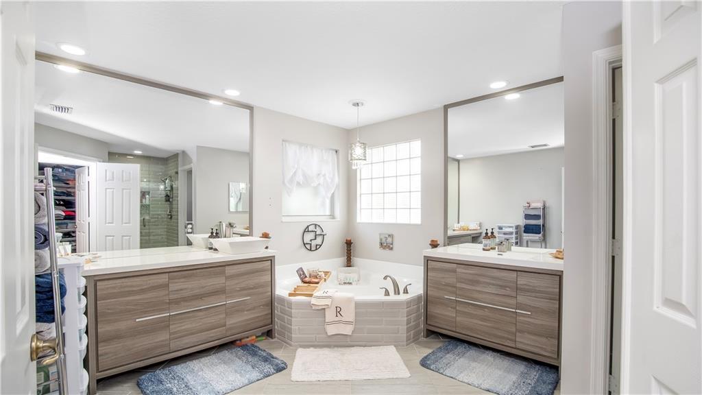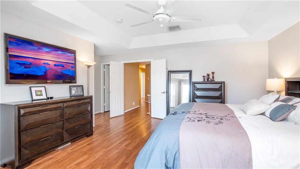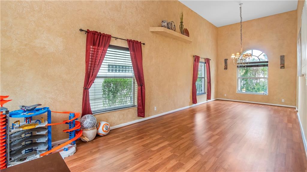 This fabulous 5 bedroom, 3 full bath, pool home is a dream come true! One full bedroom/office & full bathroom on first floor; updated kitchen and baths; and an oversized primary suite you won't want to leave with tray ceilings, large walk in closet and a beautiful, remodeled bathroom. 4 bedrooms, 2 baths and a loft upstairs. Eat in kitchen with lots of cabinet and counter top space; formal dining & living room with volume ceilings; separate family room off kitchen. Perfect floor plan flow for family enjoyment and entertaining. A backyard made for fun with pool and spa. Accordion hurricane shutters on second floor. Located on a cul-de-sac that offers privacy & space in the community of Pelican Trail West of Wyndham Lakes. Low hoa that includes lawn and gate. A great place to call home!