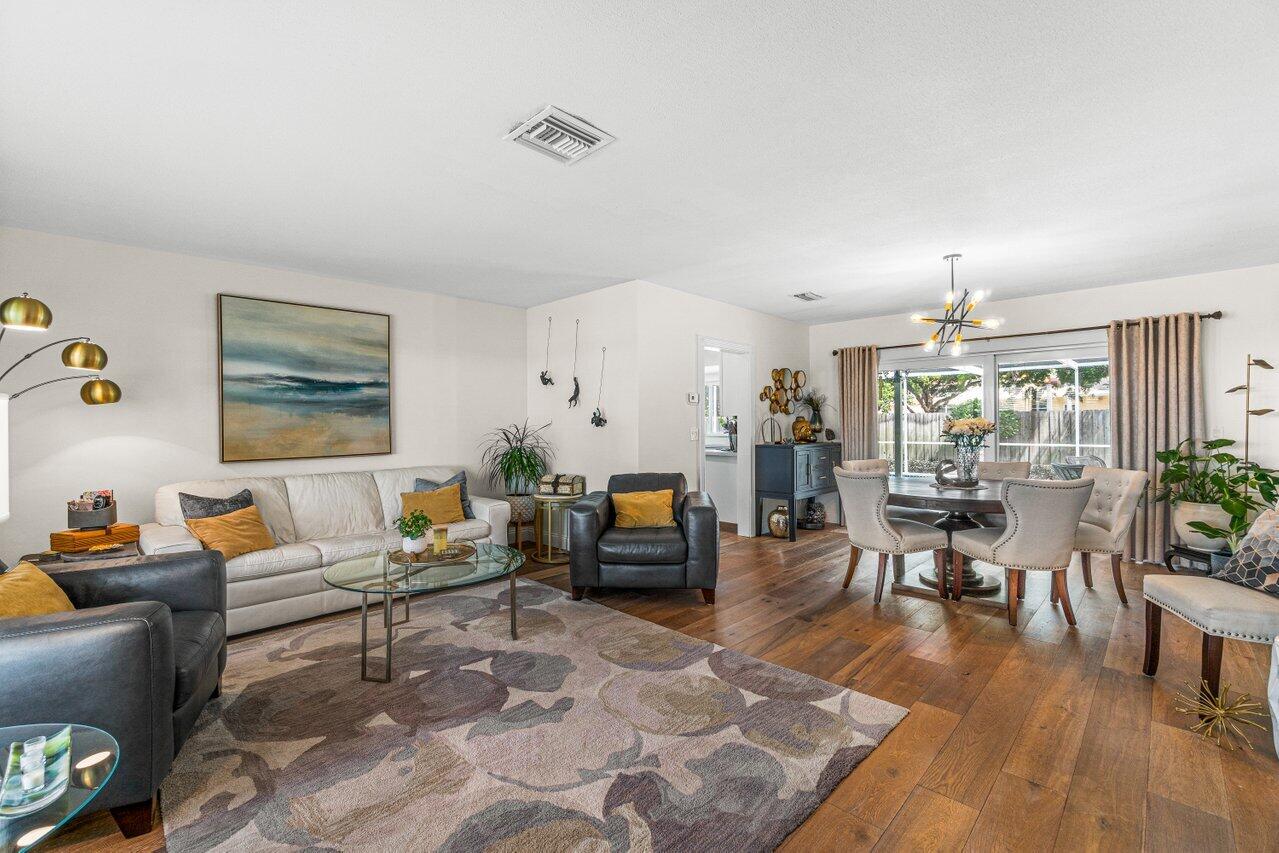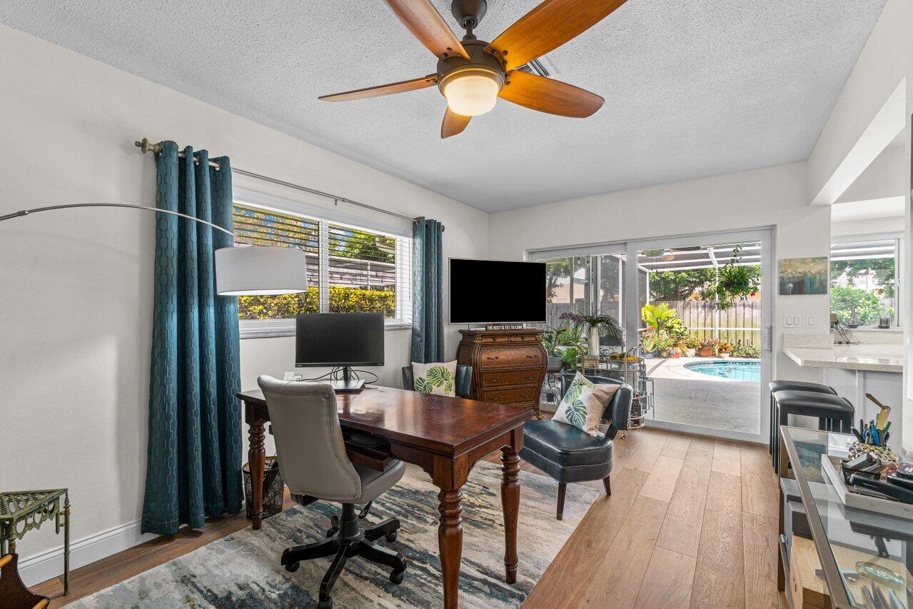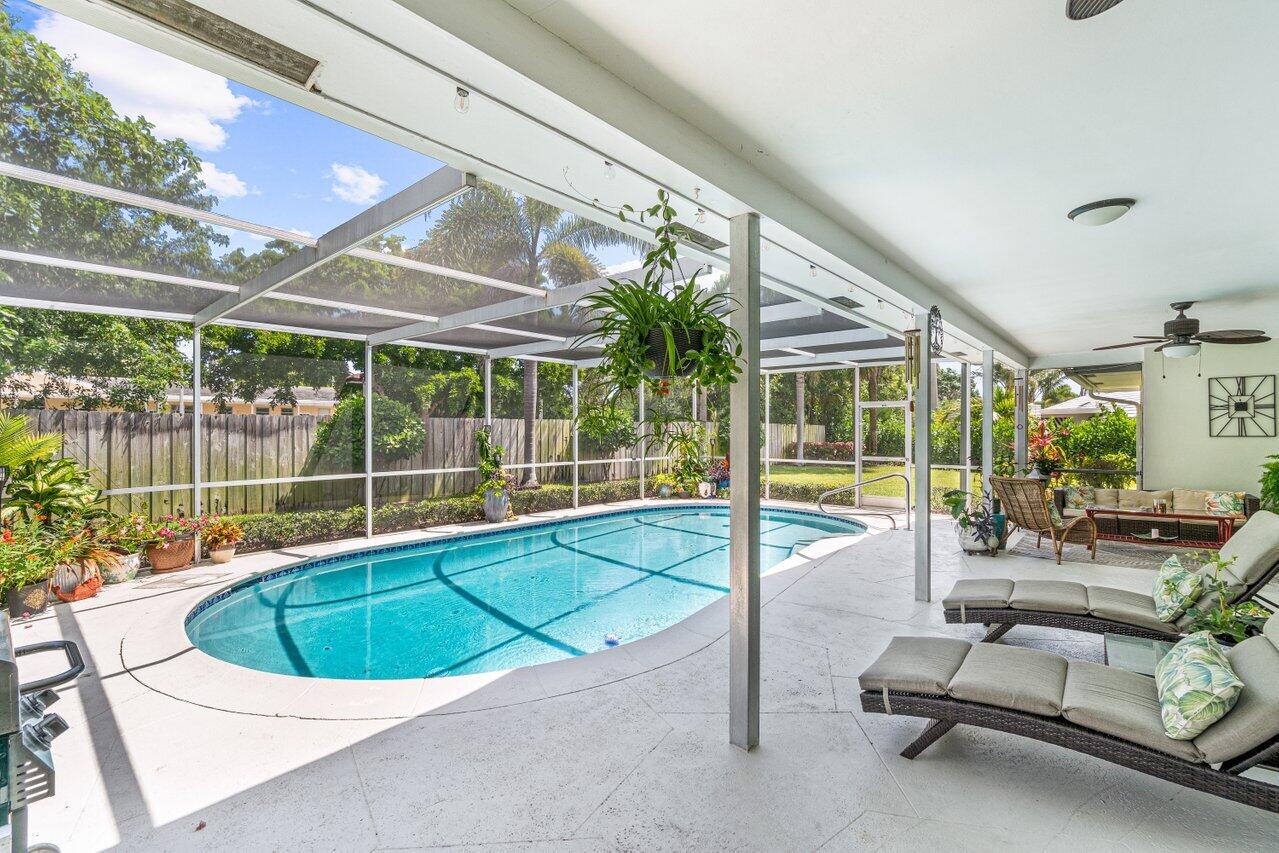 This spacious 2 bedroom home with additional office-den-family room in Camino Gardens is charming, renovated and move-in ready! Situated on a quiet street with no through traffic, mature landscaping, and great neighbors. Home features porcelain tile flooring throughout, remodeled kitchen with stainless steel appliances, updated bathrooms, and impact windows and doors. Primary bedroom boasts a custom closet and en-suite bathroom that doubles as a cabana bath. Spacious backyard with a screened in pool and expansive patio are perfect for entertaining, playing, or relaxing in your private oasis. Camino Gardens is a manicured and sought-after East Boca neighborhood in close proximity to A-Rated schools, beaches, shopping, restaurants, parks, golf and tennis.