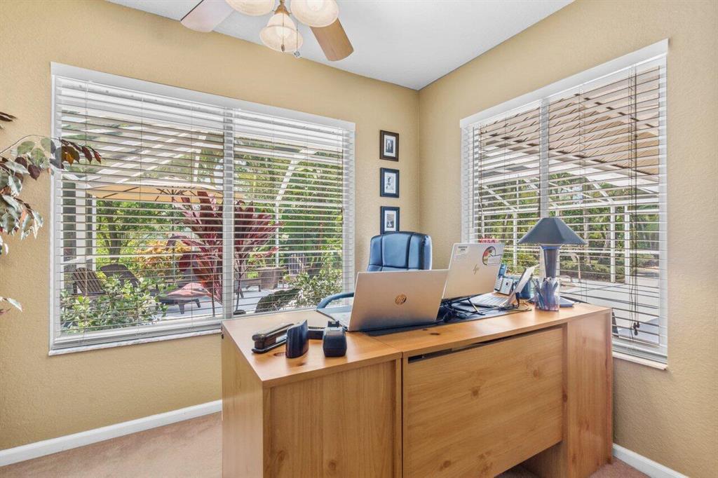 Immaculate 5bd 3.5ba 2 car garage CBS pool home 3,400sqft of living area! lushly landscaped pool home features smart home technology w/voice command, split flr plan, formal dining/living, large family room, spacious eat in kit w/island & breakfast bar, fireplace, large master suite w/2 walk in closets & office. Appliances 2022, roof 2013 Original floor plan had west side of house as a 775sqft guest house that was a 1 bedroom, living area & kitchen, w/private entrance. Outside features large cathedral (2013) screened pool patio, plus landscaped brick fire pit to enjoy starry nights on tropically landscape lot w/lighting.